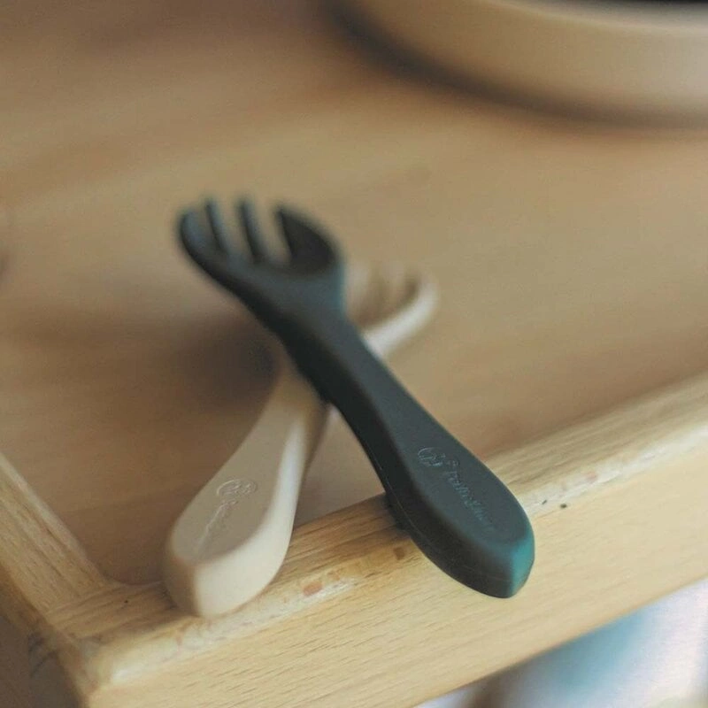 Setul format dintr-o furculita si o lingura este realizat integral din silicon alimentar fara BPA. Acest lucru ii permite copilului dumneavoastra sa manance atat alimente calde, cat si reci cu tacamurile. Siliconul flexibil face tacamurile ideale pentru gingiile sensibile ale unui copil mic. Tacamurile sunt potrivite pentru bebelusii de la varsta de 6 luni care sunt introdusi intr-o dieta extinsa si cei care deja invata sa manance cu succes singuri. Formele rotunjite si dimensiunile mici le fac mai usor de luat si de mancat pentru cel mic.