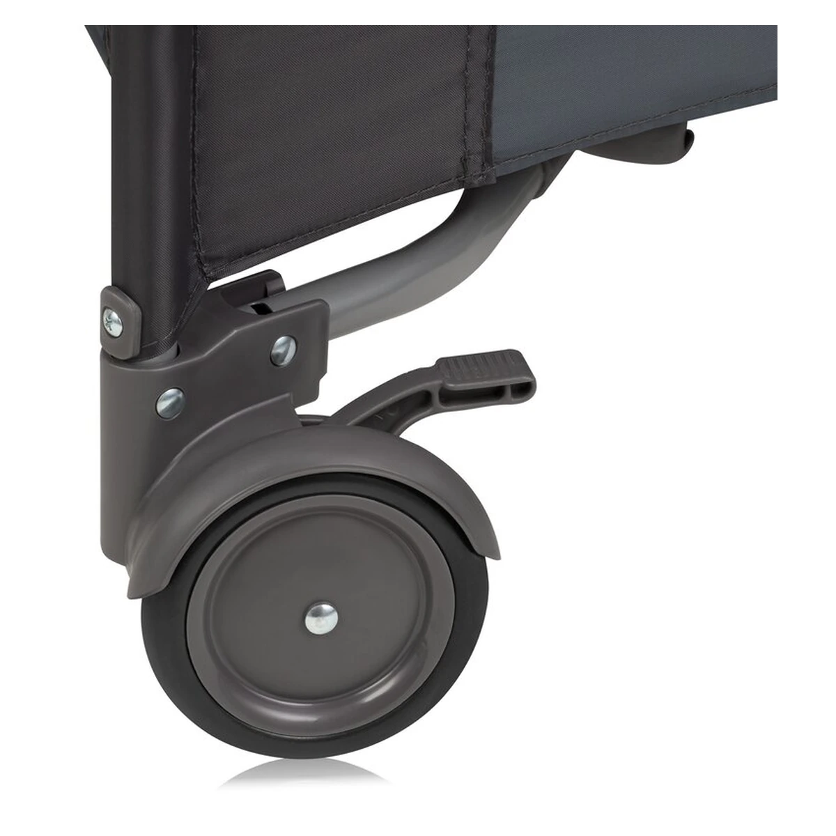 Metoda rapida si intuitiva de pliere face ca produsul sa fie ideal pentru calatorii. O geanta speciala este inclusa pentru a facilita transportul. In viata de zi cu zi, cele doua roti cu frana sunt excelente pentru a muta tarcul liber.