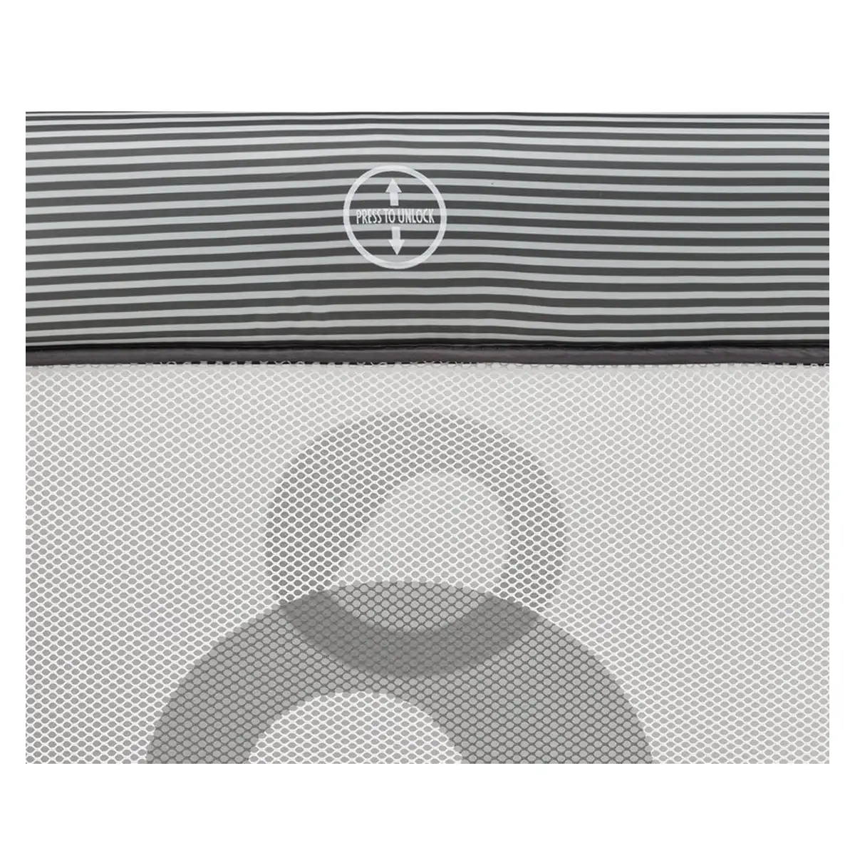 Peretii laterali sunt confectionati din plasa aerisita pentru a garanta circulatia constanta a aerului. In plus, aceasta permite mentinerea contactului vizual intre copil si parinti.