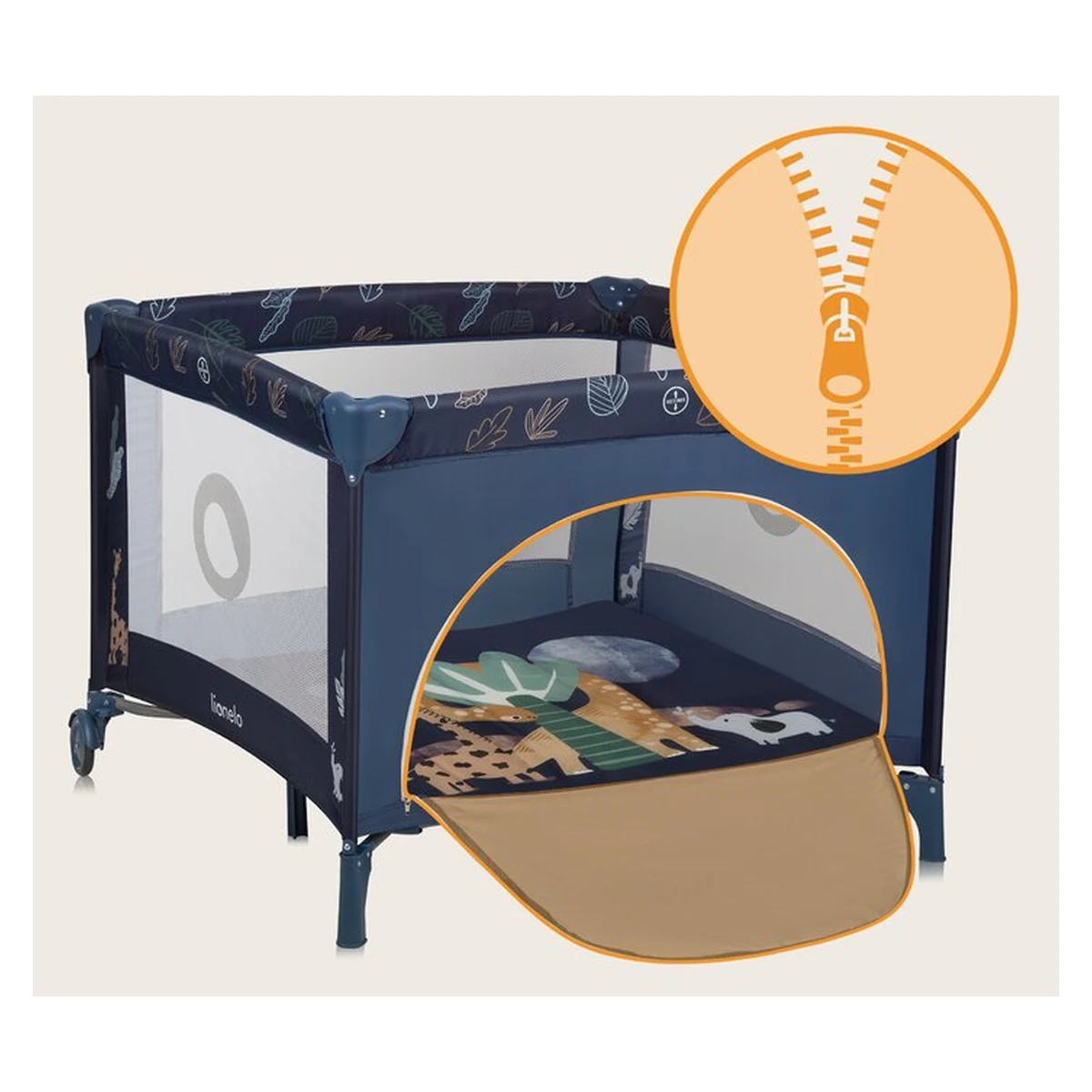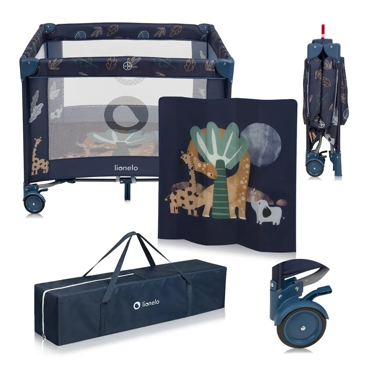 Lionelo Bonnie este un tarc de joaca functional pentru bebelusi, care le permite parintilor sa delimiteze o zona sigura pentru joaca si odihna pentru micutul lor. Dimensiunea mare asigura libertatea de miscare a copilului, in timp ce una dintre intrarile laterale, cu fermoar, permite copiilor mai mari sa intre si sa iasa din tarc singuri. Acest lucru nu doar ca ofera copilului un grad mare de independenta, dar si usureaza sarcina parintelui, care nu trebuie sa ridice si sa aseze copilul de fiecare data. Cu toate acestea, inchiderea este plasata pe exterior, astfel incat tarcul sa ramana sub controlul total al parintelui. Peretii laterali sunt confectionati dintr-o plasa speciala care garanteaza respirabilitatea si permite pastrarea contactului vizual intre copil si parinte. De asemenea, tarcul are o saltea speciala cu densitate T25, adaptata nevoilor copilului. 2 roti cu frane permit mutarea libera a tarcului conform nevoilor curente.