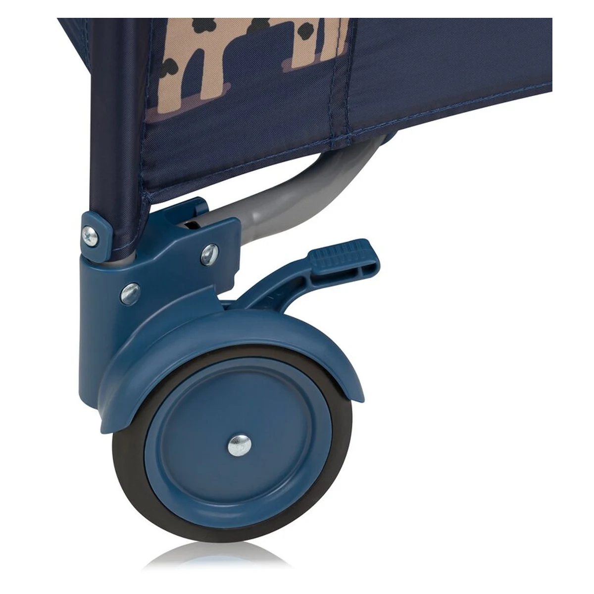 Metoda rapida si intuitiva de pliere face ca produsul sa fie ideal pentru calatorii. O geanta speciala este inclusa pentru a facilita transportul. In viata de zi cu zi, cele doua roti cu frana sunt excelente pentru a muta tarcul liber.