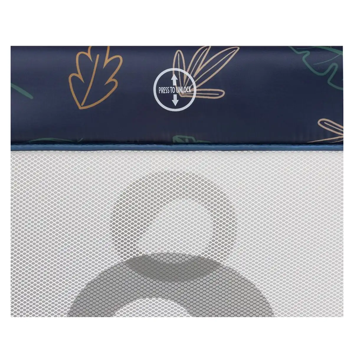 Peretii laterali sunt confectionati din plasa aerisita pentru a garanta circulatia constanta a aerului. In plus, aceasta permite mentinerea contactului vizual intre copil si parinti.