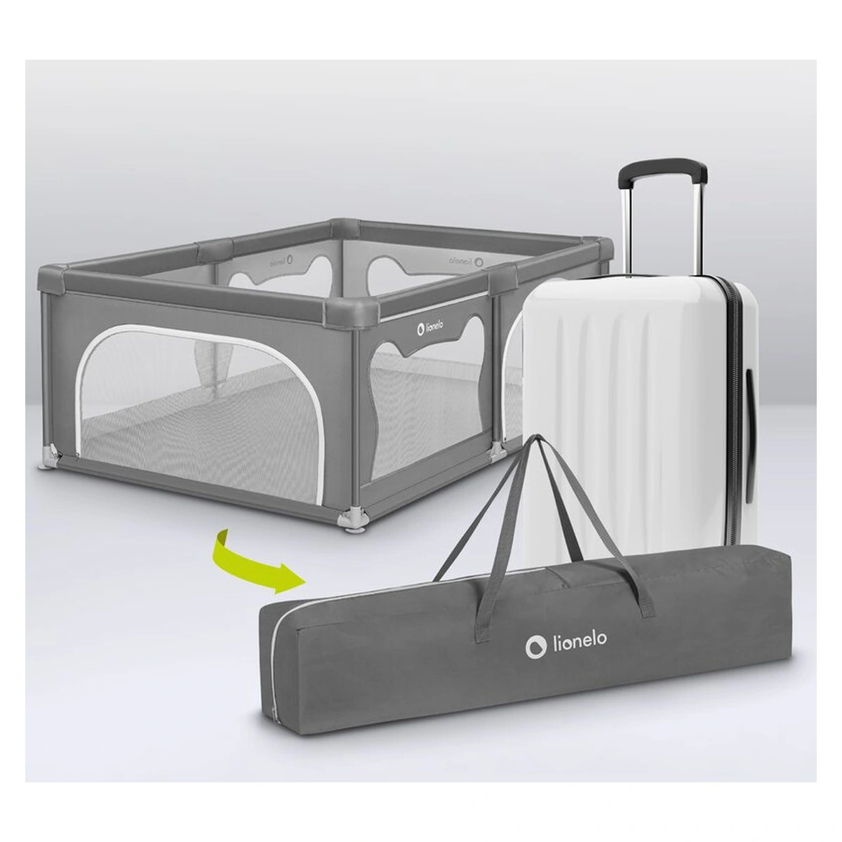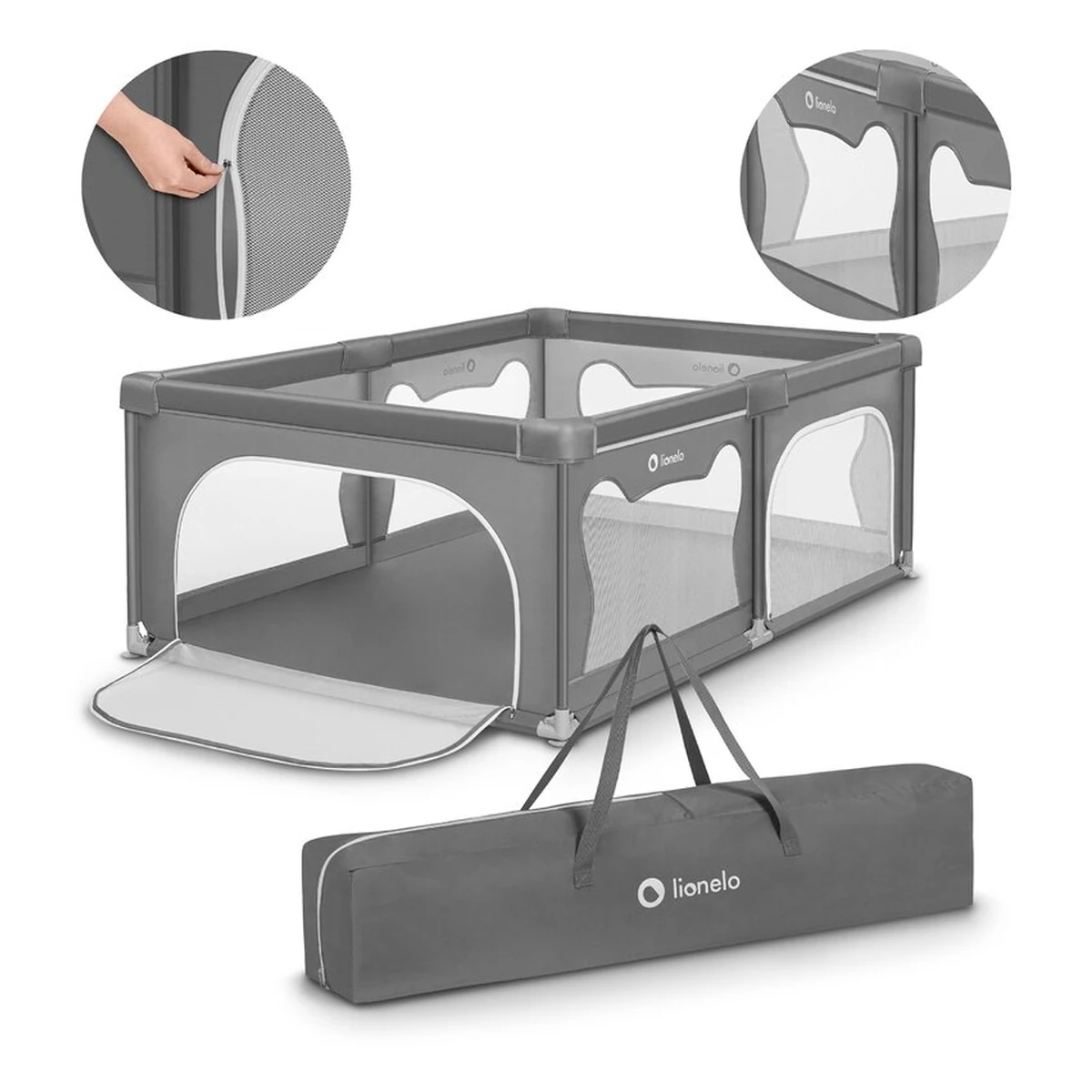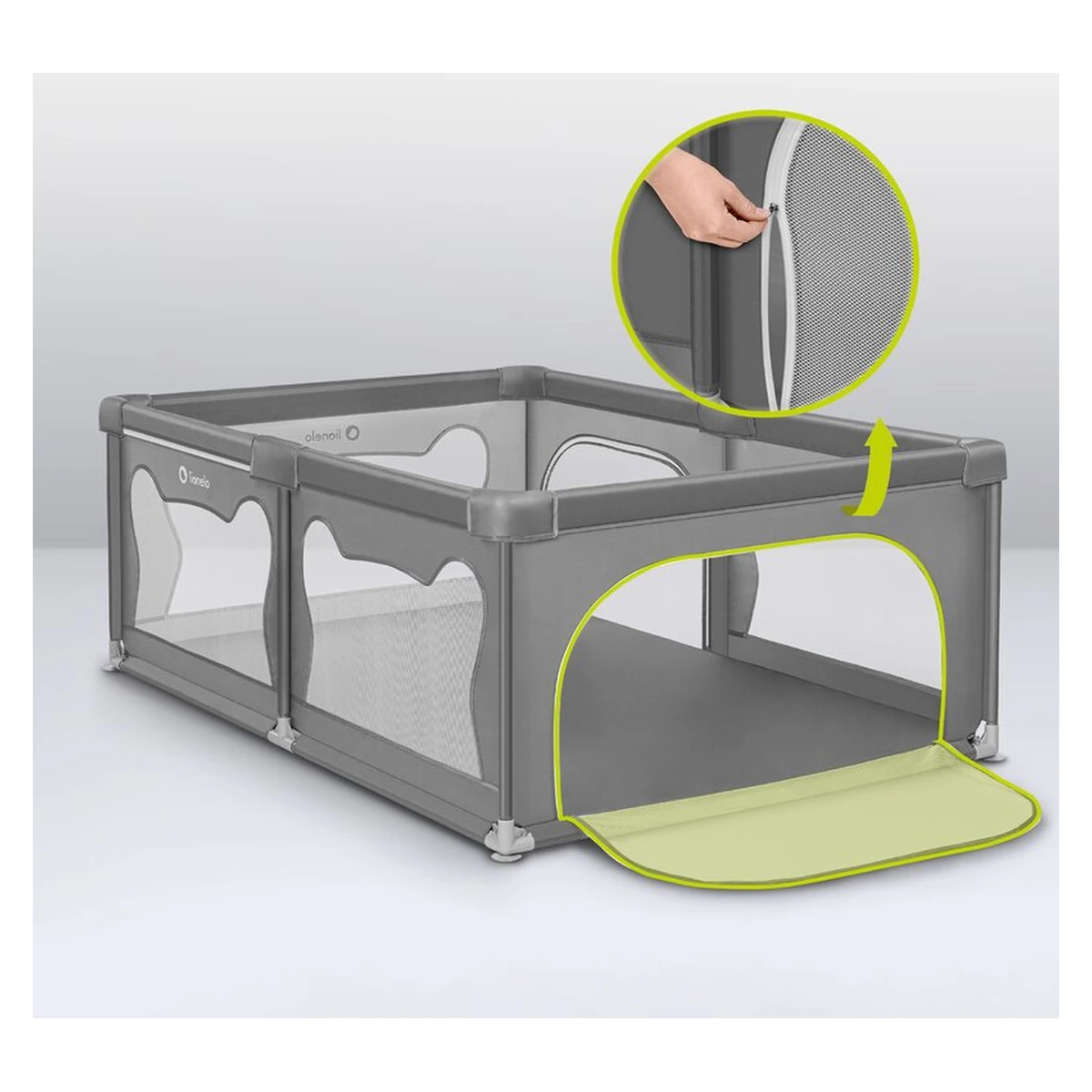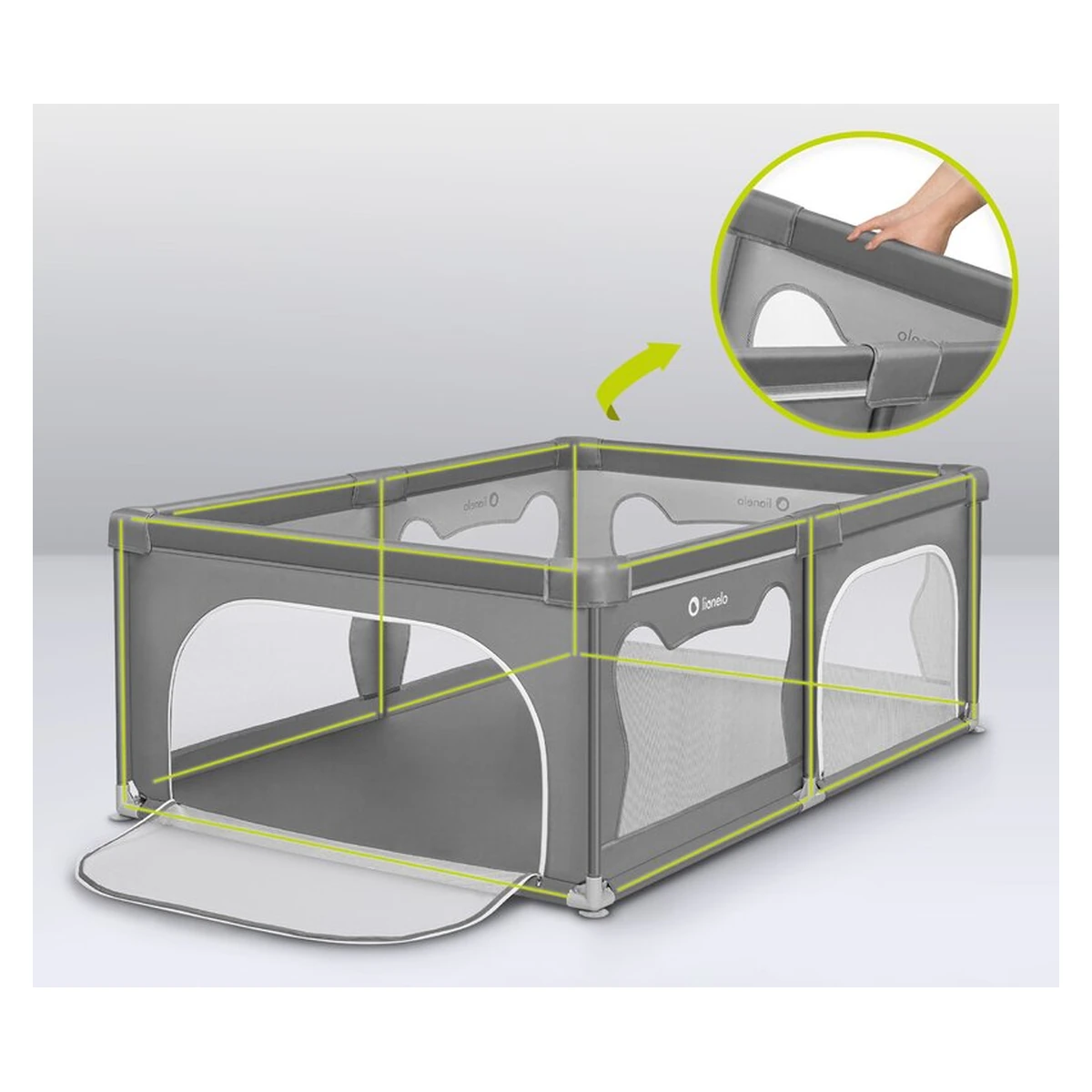 Datorita spatiului de joaca separat, parintele poate indeplini alte sarcini in timp ce copilul se afla intr-un loc sigur. Cele doua intrari laterale cu fermoar permit controlul deplin al spatiului - fermoarul este la exterior, astfel incat numai parintele poate decide sa le deschida. Produsul poate fi desfacut si pliat fara utilizarea uneltelor, iar dimensiunea compacta si geanta inclusa faciliteaza depozitarea. Materialul tarcului de joaca este usor de curatat, astfel incat produsul va dura multi ani.