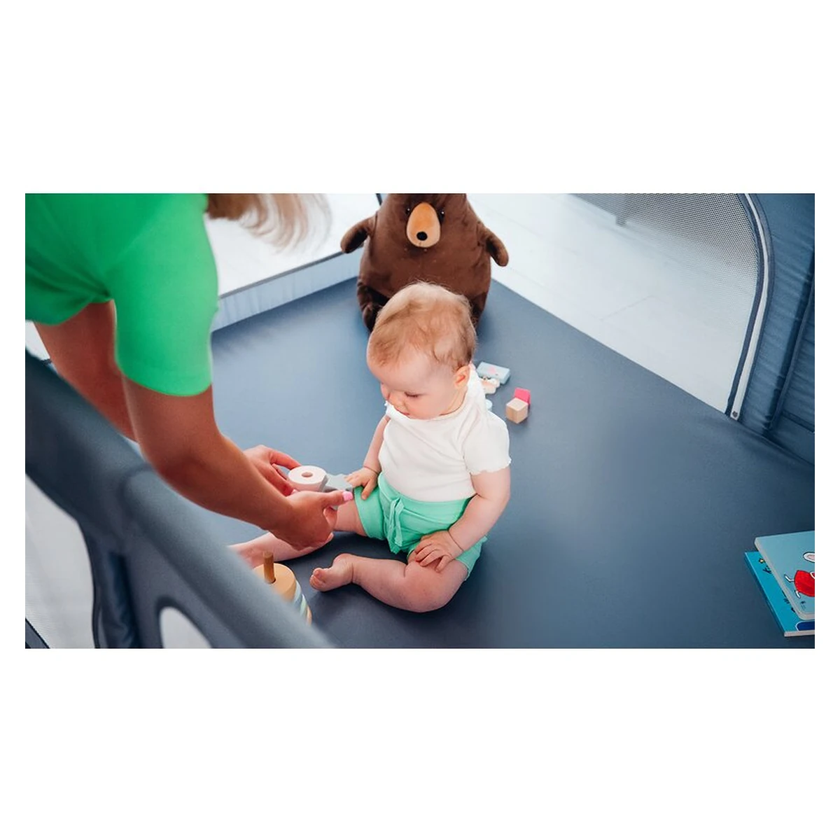 Tarcul de joaca Willow ofera spatiu pentru copilul dumneavoastra sa se joace in siguranta si liber. Dimensiunea tarcului de joaca permite bebelusului sa se miste liber, exersand rostogolirea, tararea si primii pasi, dar fara riscul de a iesi din spatiul desemnat. Tesatura din partea inferioara a tarcului de joaca ofera un spatiu curat pentru joaca zilnica.