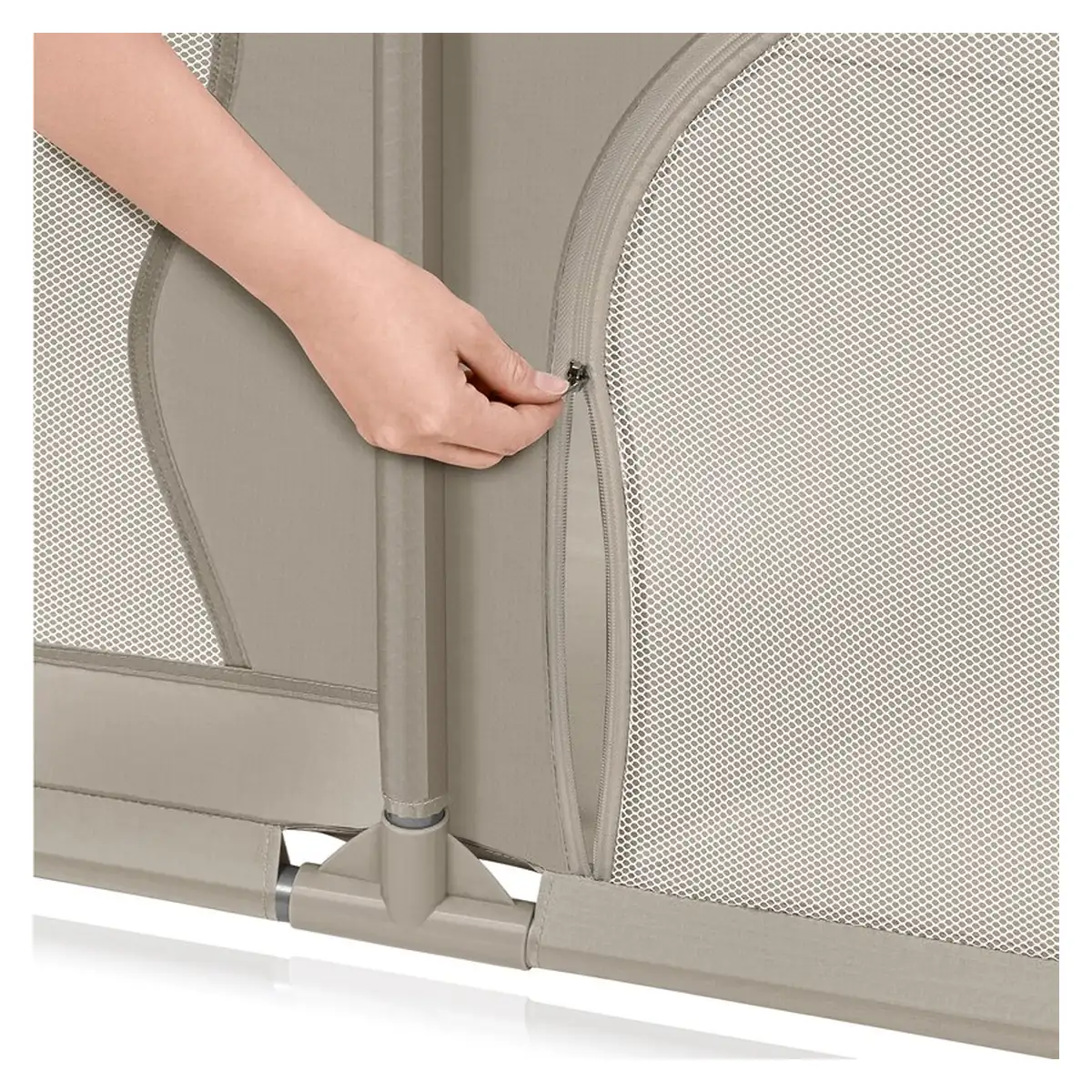Datorita spatiului de joaca separat, parintele poate indeplini alte sarcini in timp ce copilul se afla intr-un loc sigur. Cele doua intrari laterale cu fermoar permit controlul deplin al spatiului - fermoarul este la exterior, astfel incat numai parintele poate decide sa le deschida. Produsul poate fi desfacut si pliat fara utilizarea uneltelor, iar dimensiunea compacta si geanta inclusa faciliteaza depozitarea. Materialul tarcului de joaca este usor de curatat, astfel incat produsul va dura multi ani.