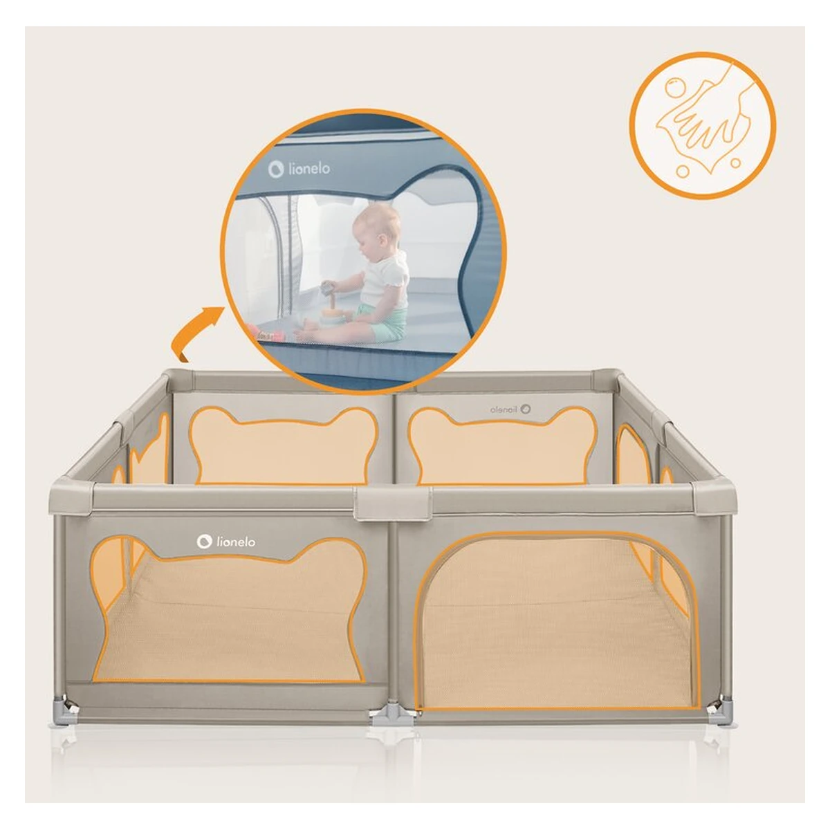 Lionelo Tarc de joaca copii, Lionelo, Willow XL,180 x 200 cm, Cu doua intrari laterale si fermoar