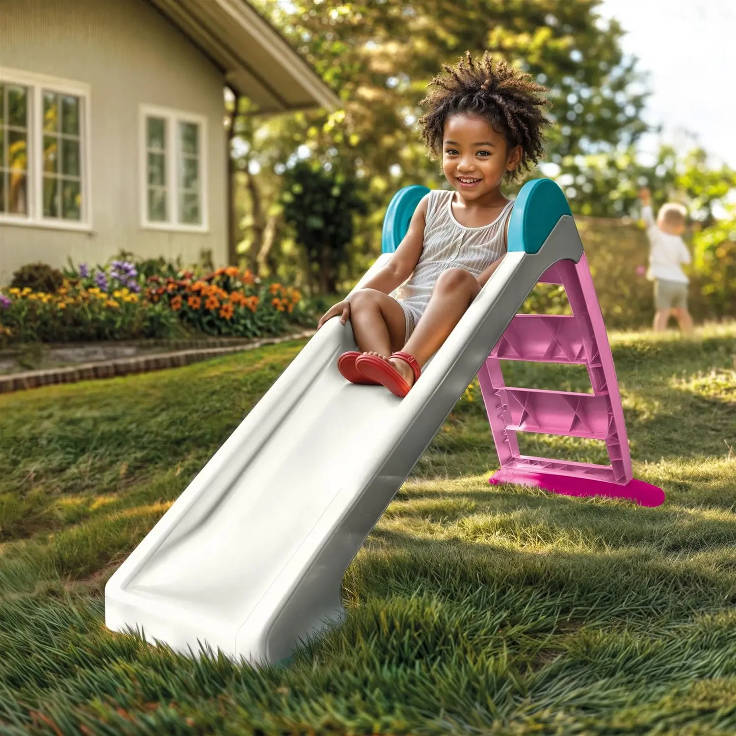 • echipat cu o scara solida si aderenta, acest tobogan este usor de utilizat de catre copii, oferindu-le sprijin optim in timpul urcarii