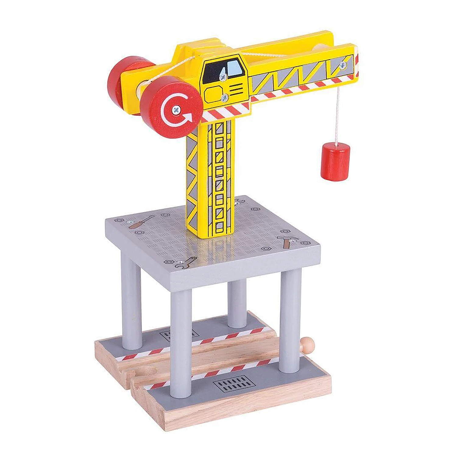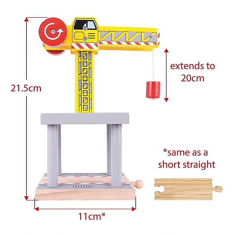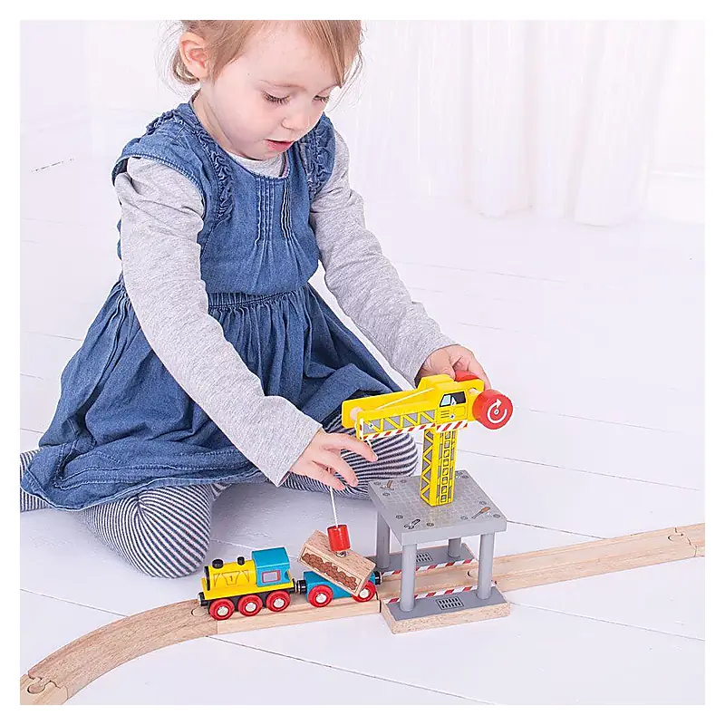 Daca ai deja un circuit din lemn cu stradute, cale ferata, poduri si tuneluri, sigur iti va surade completarea lui cu aceasta macara din lemn. Cu ea ai putea incarca de exemplu vagoanele unui tren marfar.