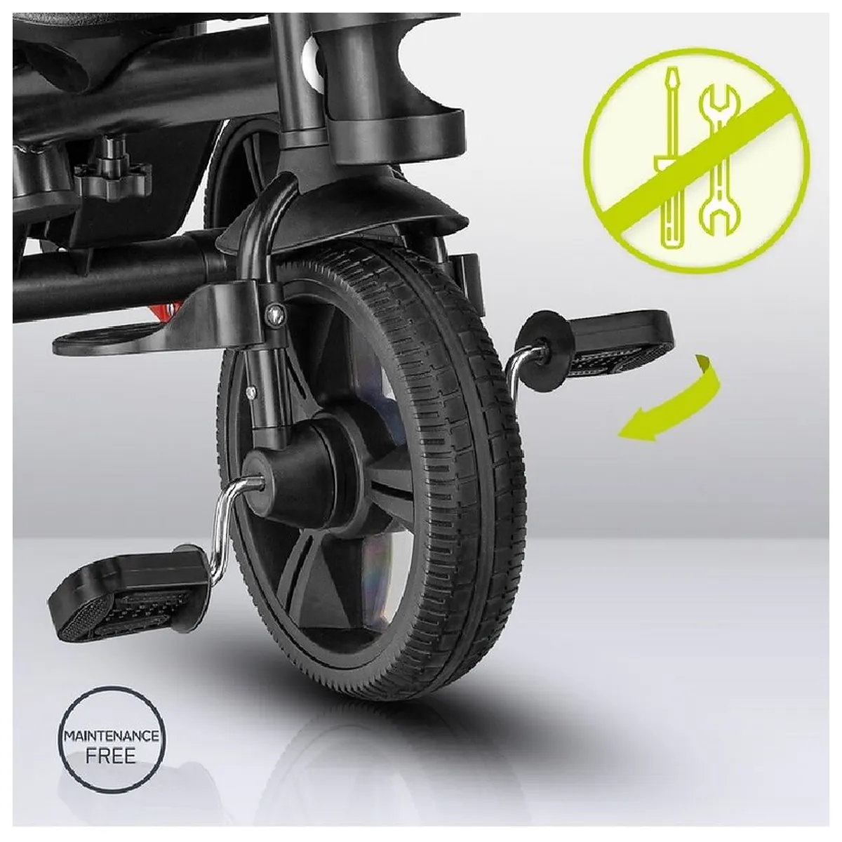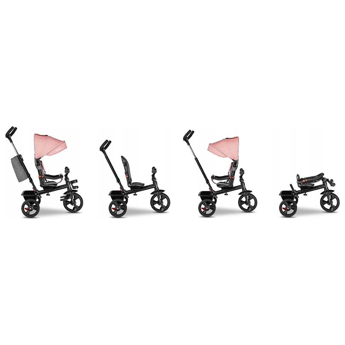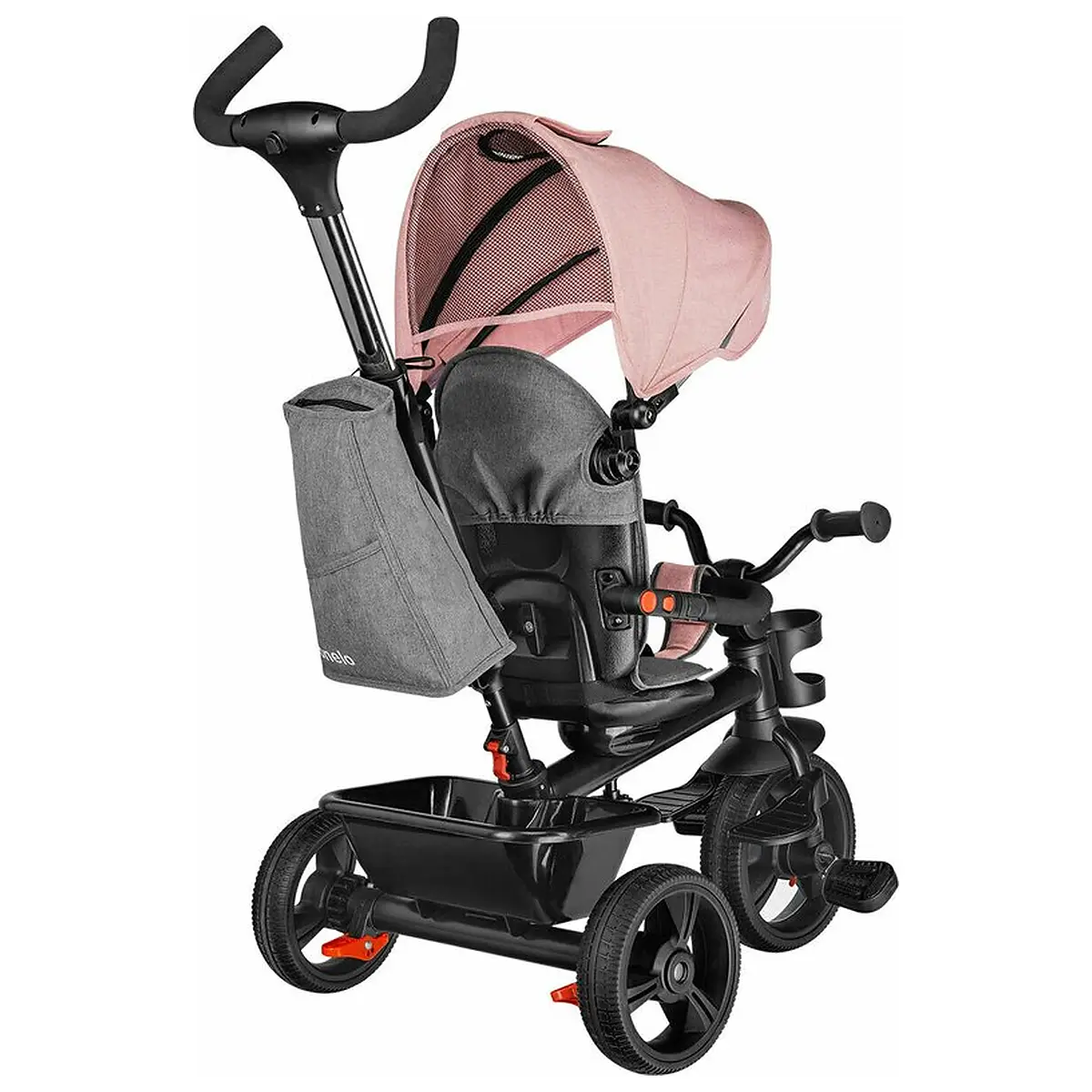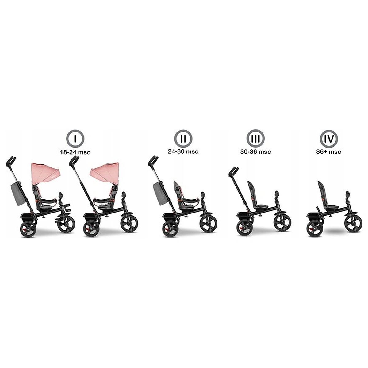 Tricicleta Haari se adapteaza cu usurinta la nevoile si varsta copilului, oferind o experienta placuta atat pentru cei mici, cat si pentru parinti. Scaunul rotativ permite orientarea copilului fie spre inainte, fie spre spate, oferind flexibilitate in utilizare. Initial, poate fi folosita ca un carucior confortabil, iar pe masura ce copilul creste si ajunge la pedale, se transforma intr-o tricicleta complet functionala, incurajand independenta.