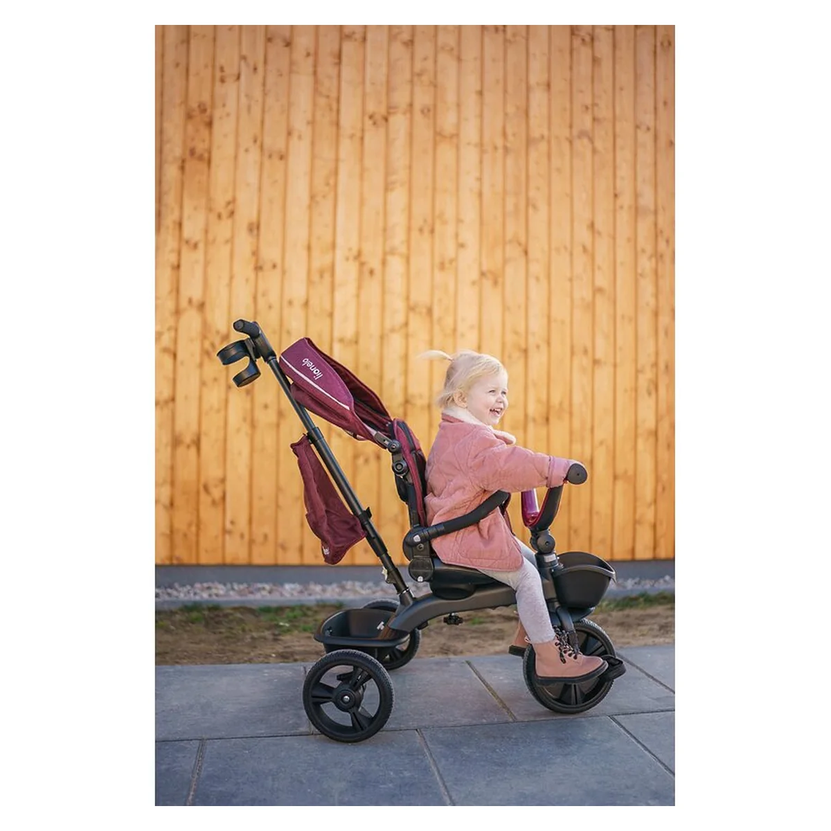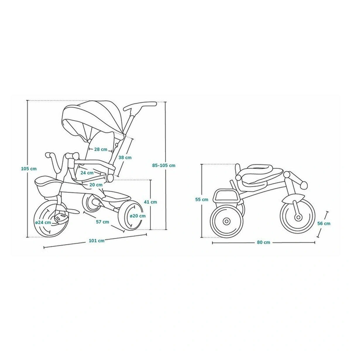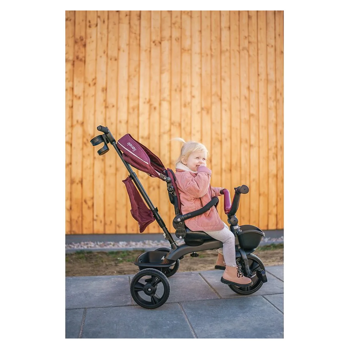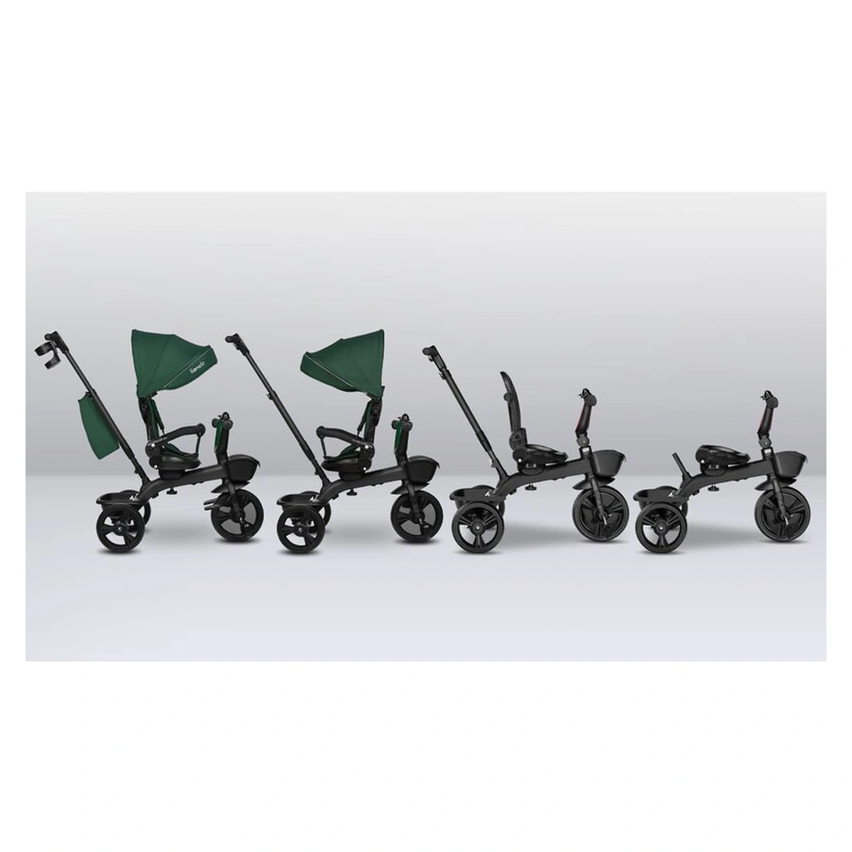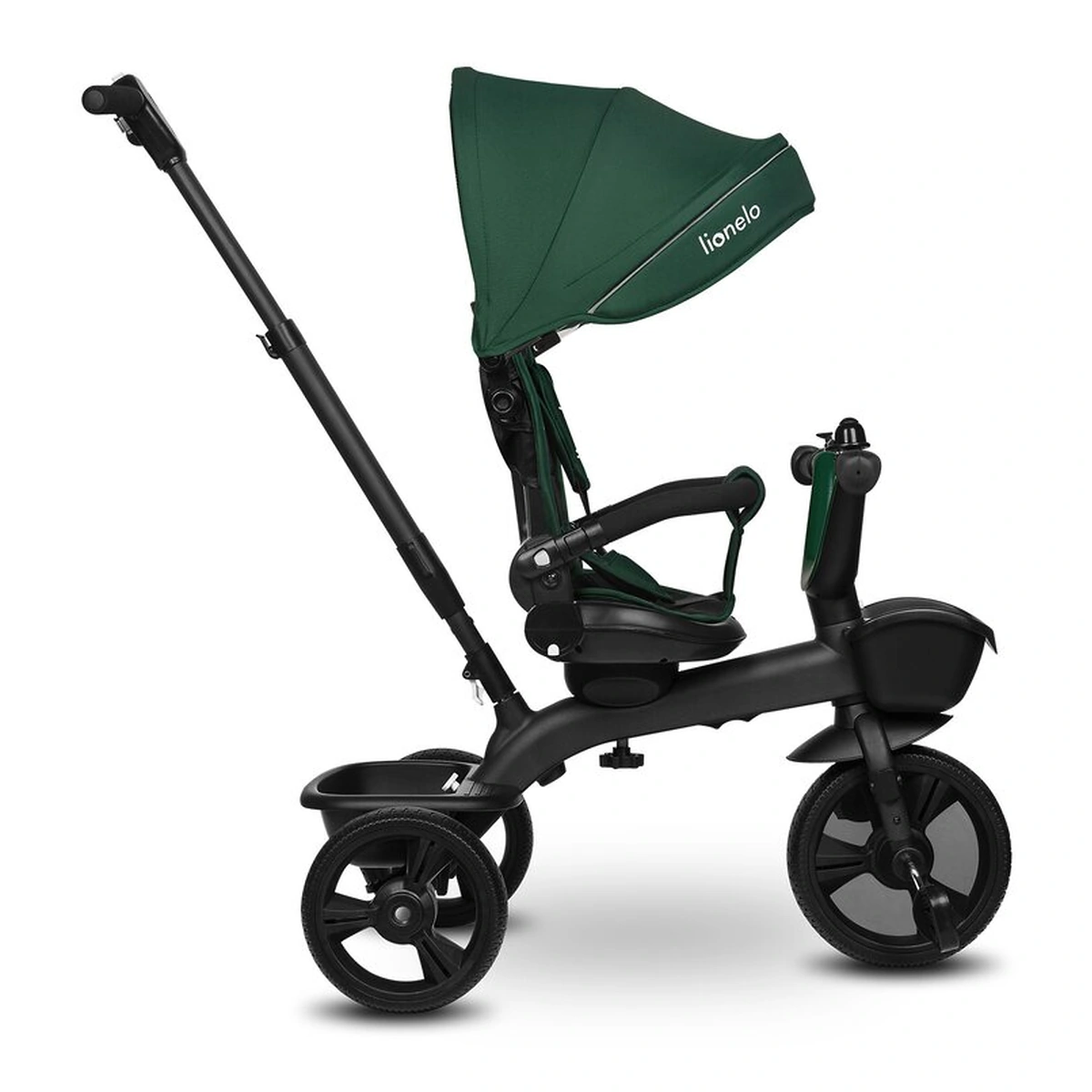 Lionelo Kori este o combinatie intre un carucior si o tricicleta clasica. Deoarece pozitia scaunului poate fi schimbata cu 180_, copilul poate calatori atat cu fata, cat si cu spatele spre directia de mers. Produsul poate fi condus cu un maner reglabil, dar copilul are permisiunea de a pedala in acelasi timp. Cand micul utilizator este suficient de inalt, puteti detasa manerul, suportul pentru picioare si arcul, astfel incat sa devina un calaret.