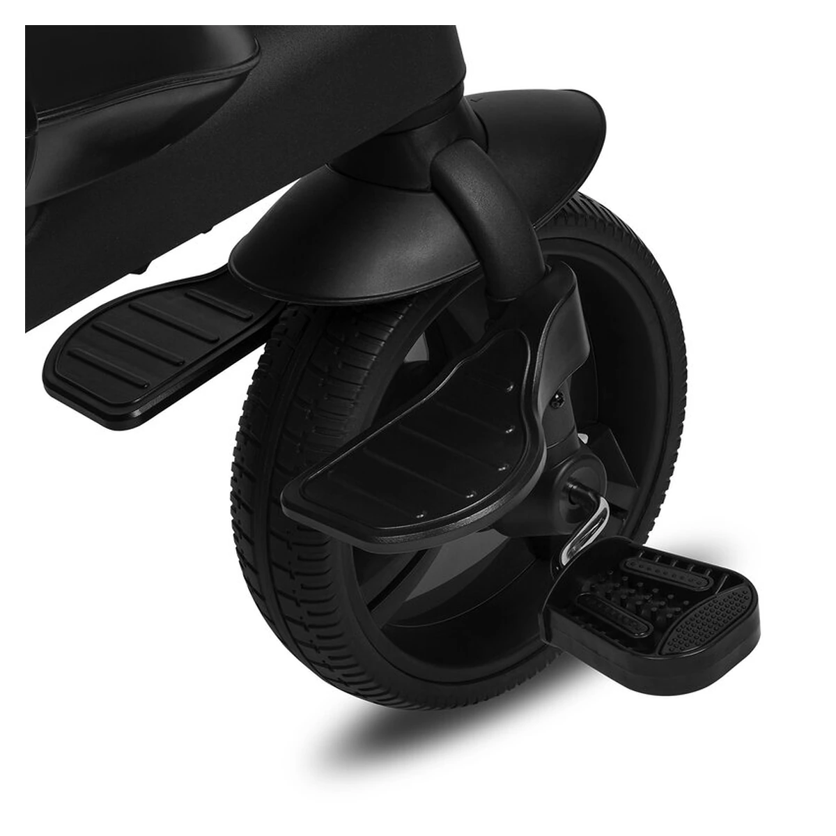 Structura Lionelo Kori se bazeaza pe un cadru usor si fara sudura, realizat din aliaj de magneziu de inalta calitate. Rotile mari ale produsului sunt echipate cu anvelope fara tuburi din cauciuc, bazate pe PU de inalta calitate. Datorita unui tratament special conceput, produsul demonstreaza performante perfecte de aderenta. Roata din fata este protejata cu un capac care actioneaza ca un aparator de noroi. Cand copilul este obosit de pedalat, isi poate odihni picioarele pe un suport pentru picioare practic.