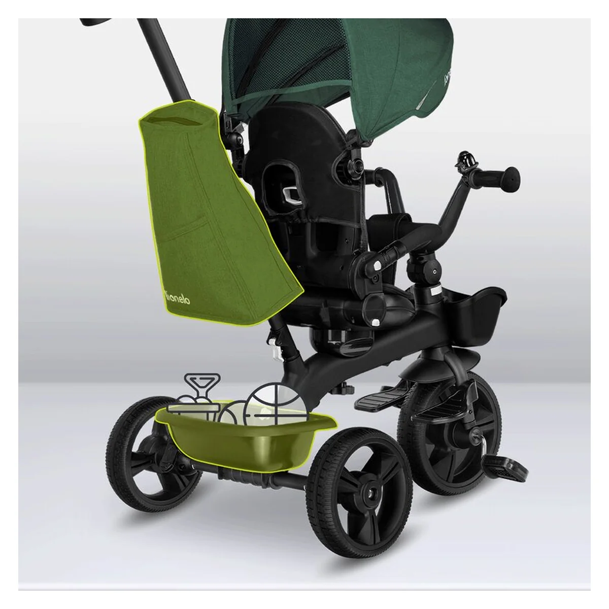 Tricicleta copii, Lionelo, Kori, Cu suport de picioare, Control al directiei, Scaun reversibil, Rotire 360 grade, Pliabila, Conform cu standardul european de securitate EN71, Verde