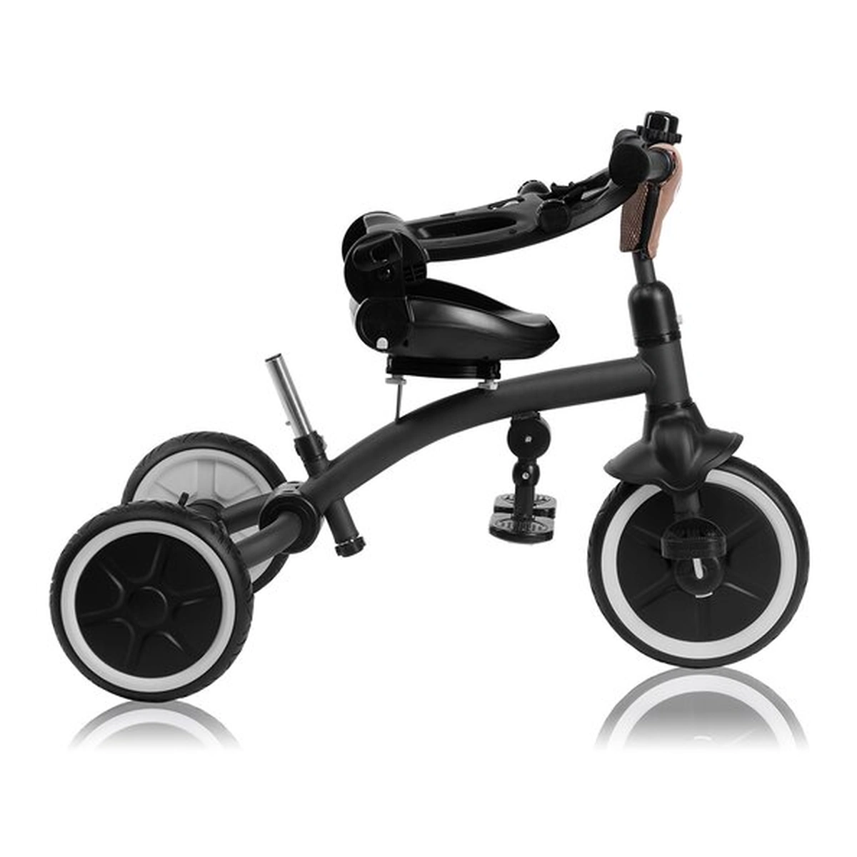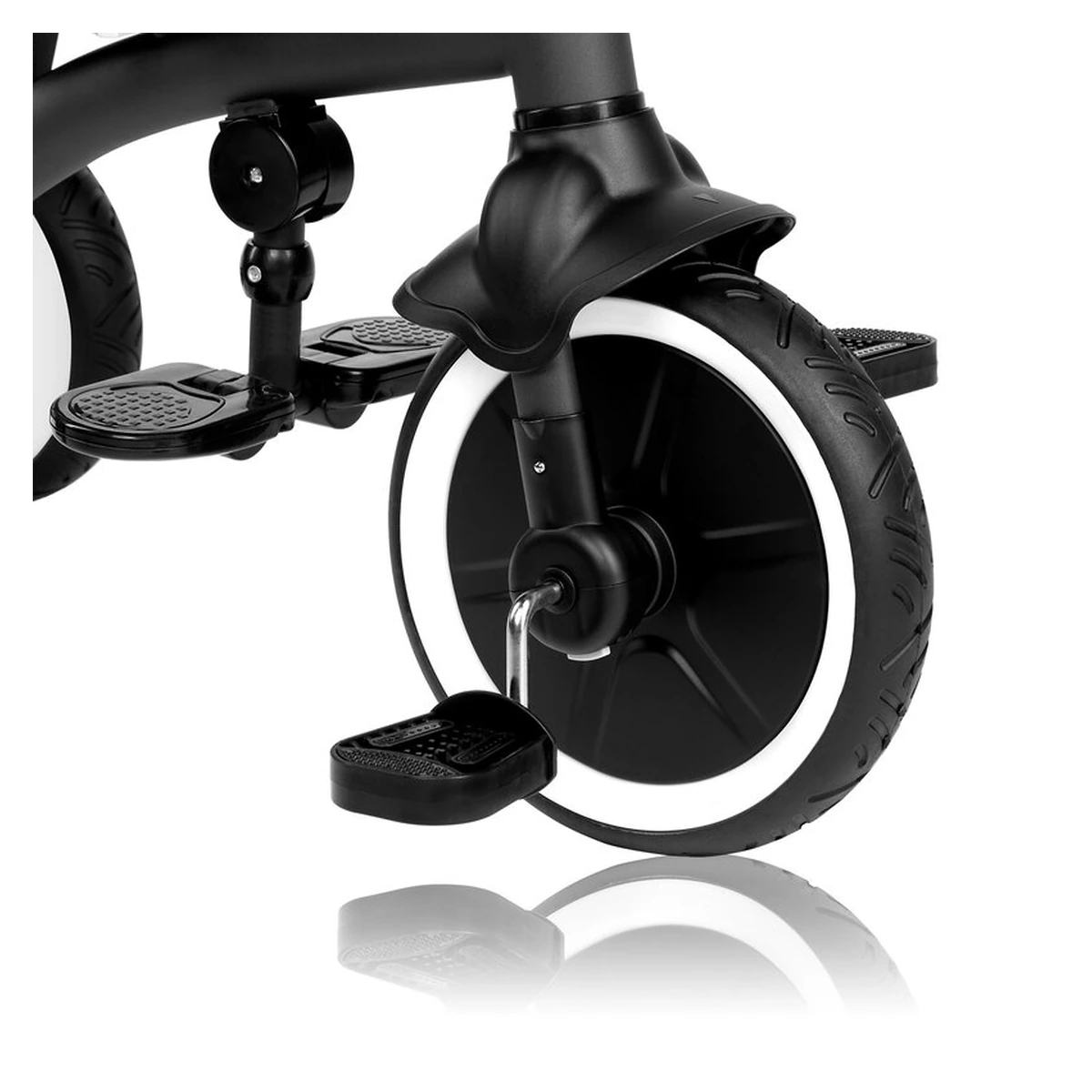 Lionelo Tris Plus este un produs 2 in 1 care combina functiile unui carucior bicicleta si ale unei triciclete. Este conceput pentru copii de la aproximativ 9 luni pana la aproximativ 5 ani sau pana cand ating o greutate de 25 kg. Datorita designului sau modular, tricicleta se adapteaza pe masura ce copilul creste. Dispune de doua suporturi de picioare confortabile pentru copiii mai mici si mai mari, care pot lua o pauza, in timp ce functia de roata libera permite pedalarea fara a influenta viteza de deplasare. Scaunul pivotant la 360 grade cu reglare a inclinarii spatarului ofera flexibilitatea de a personaliza setarile scaunului in functie de preferintele copilului. Rotile mari si rezistente la perforare din PU se descurca usor pe diverse terenuri. Tris Plus se asambleaza cu un clic, eliminand necesitatea unor unelte suplimentare. Cand produsul este pliat, este compact, asigurand o depozitare convenabila.