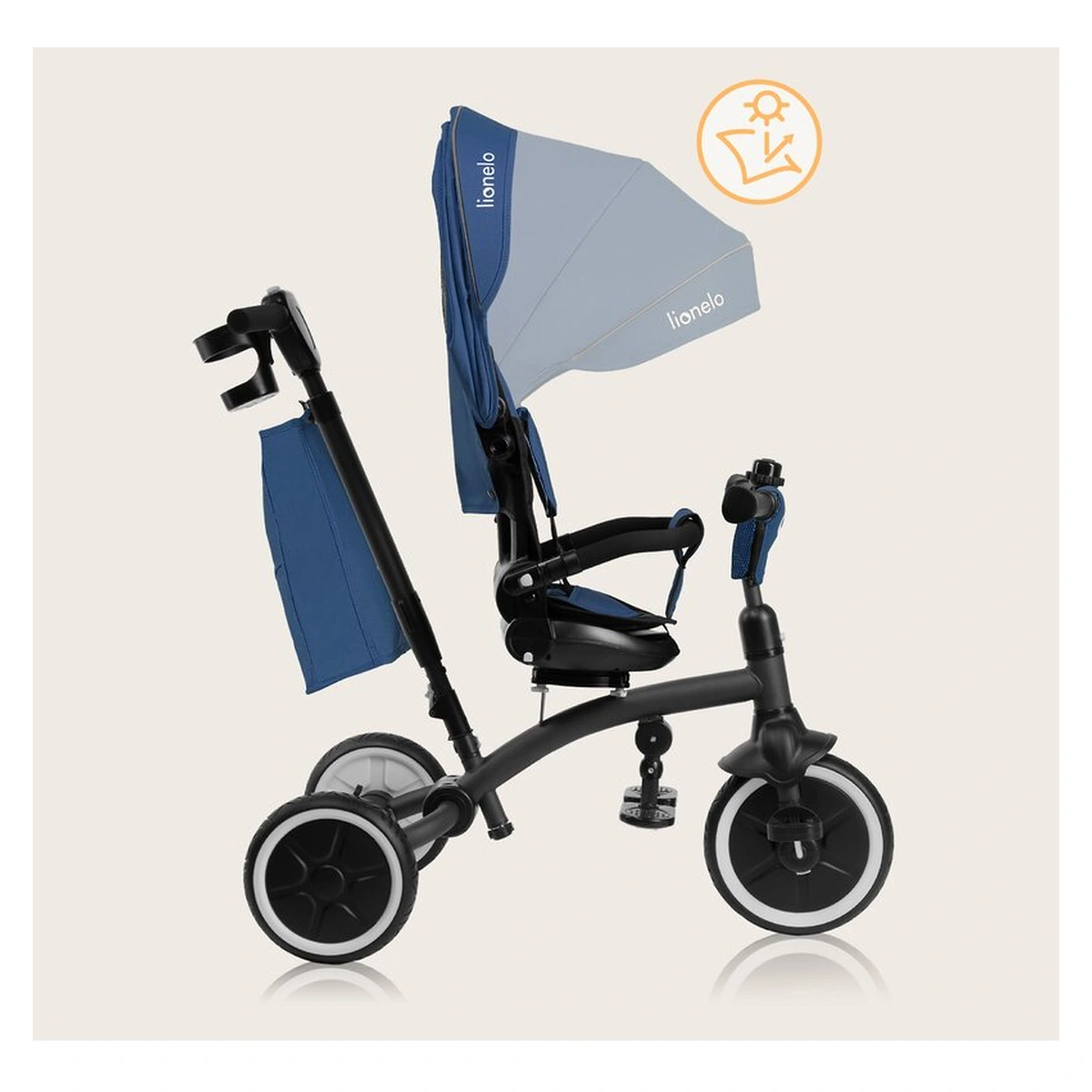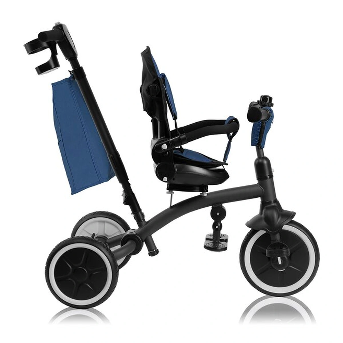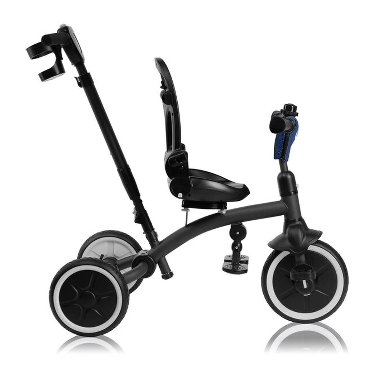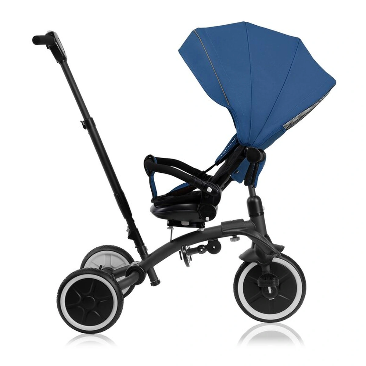 Inaltimea reglabila a manerului pentru parinte (80-100 cm) permite personalizarea in functie de inaltimea ingrijitorului. Designul usor al produsului asigura transportul facil. Cu gandul la plimbarile lungi, am asigurat si ca caruciorul/tricicleta este extrem de manevrabil.