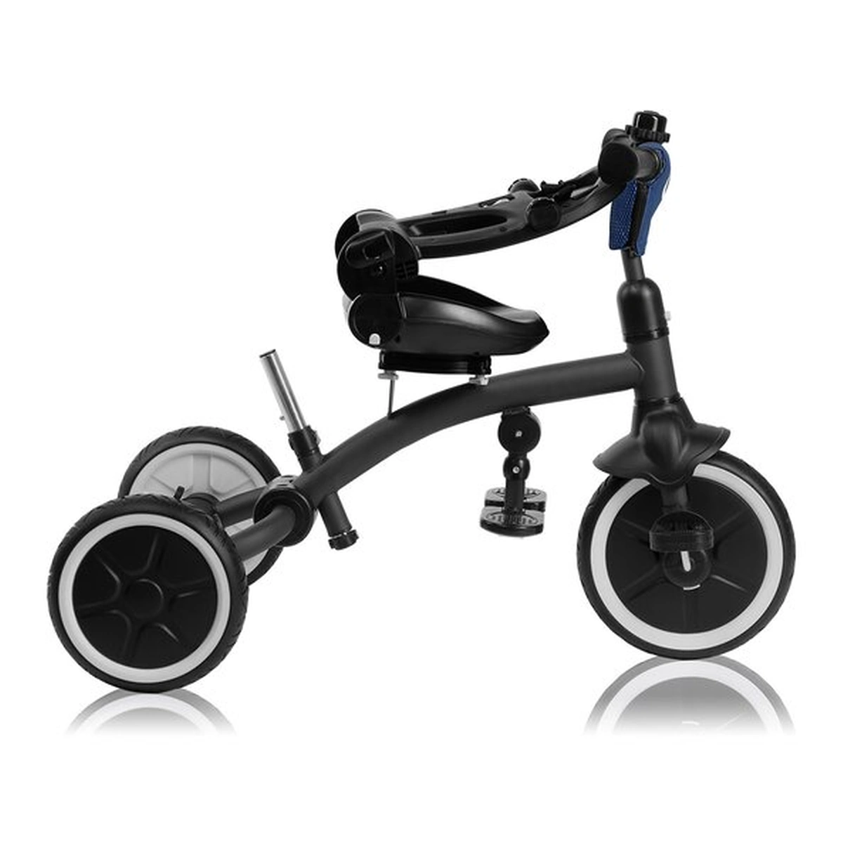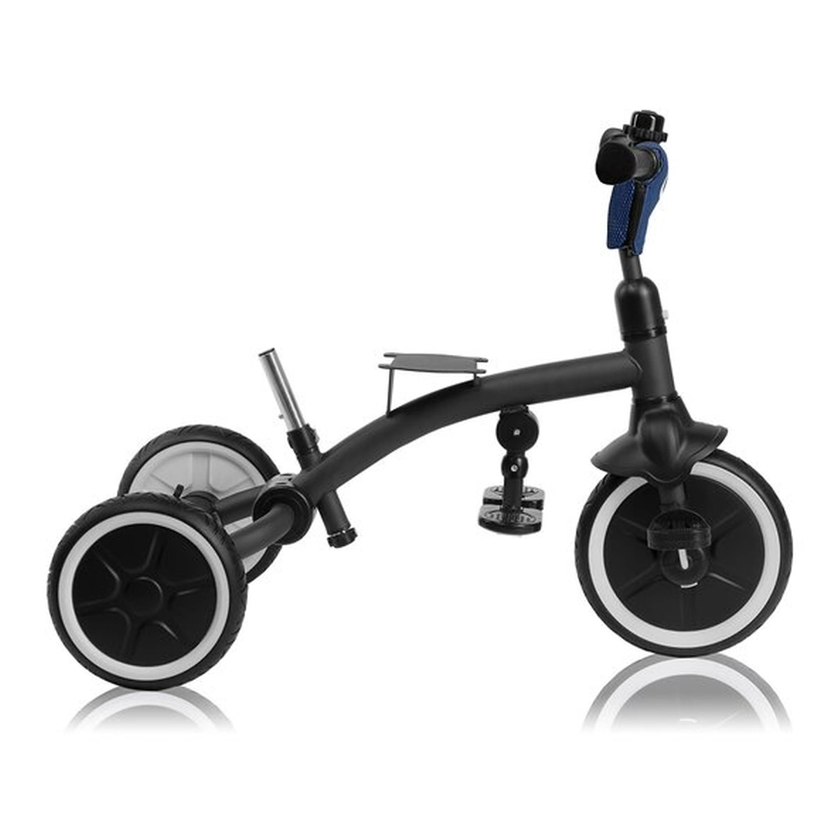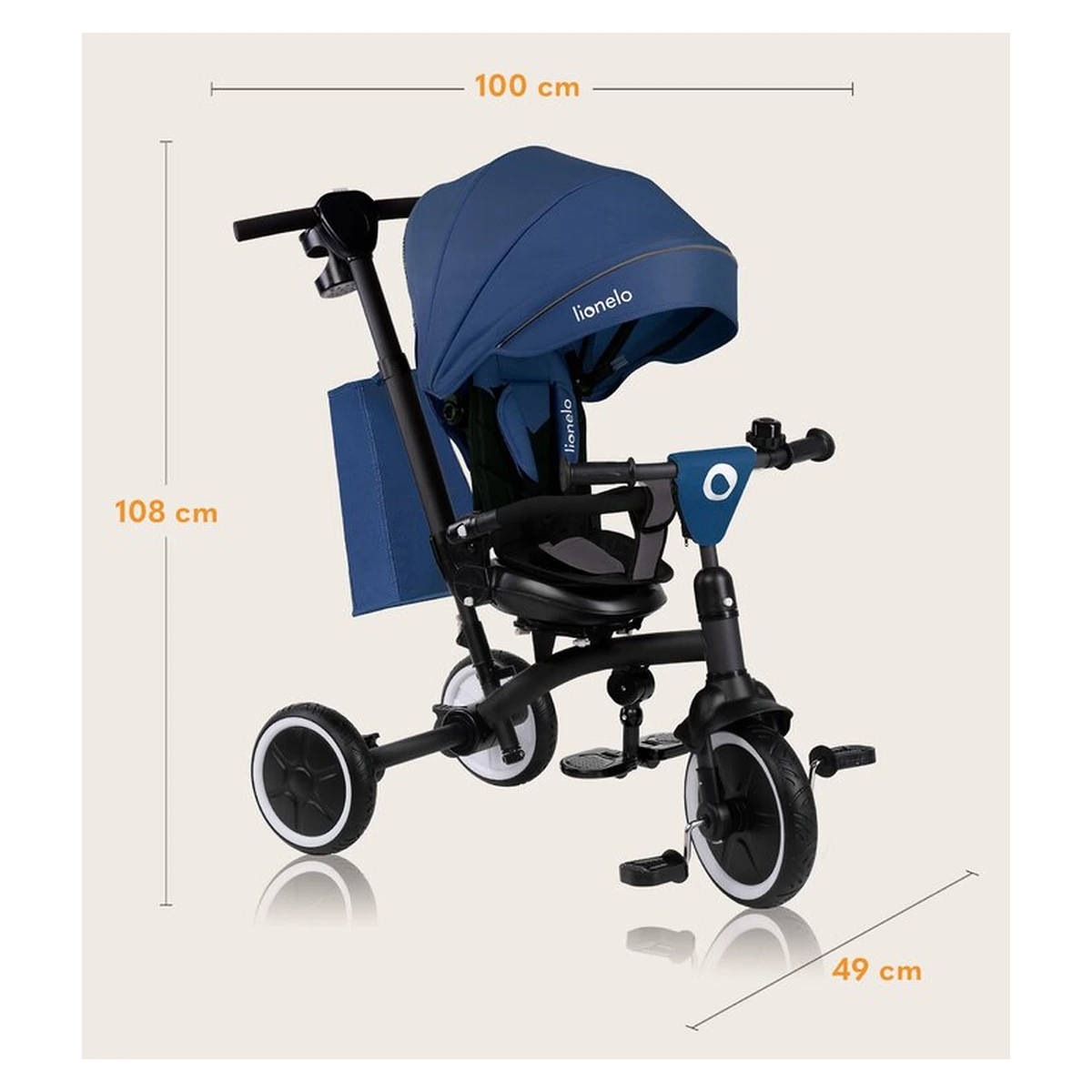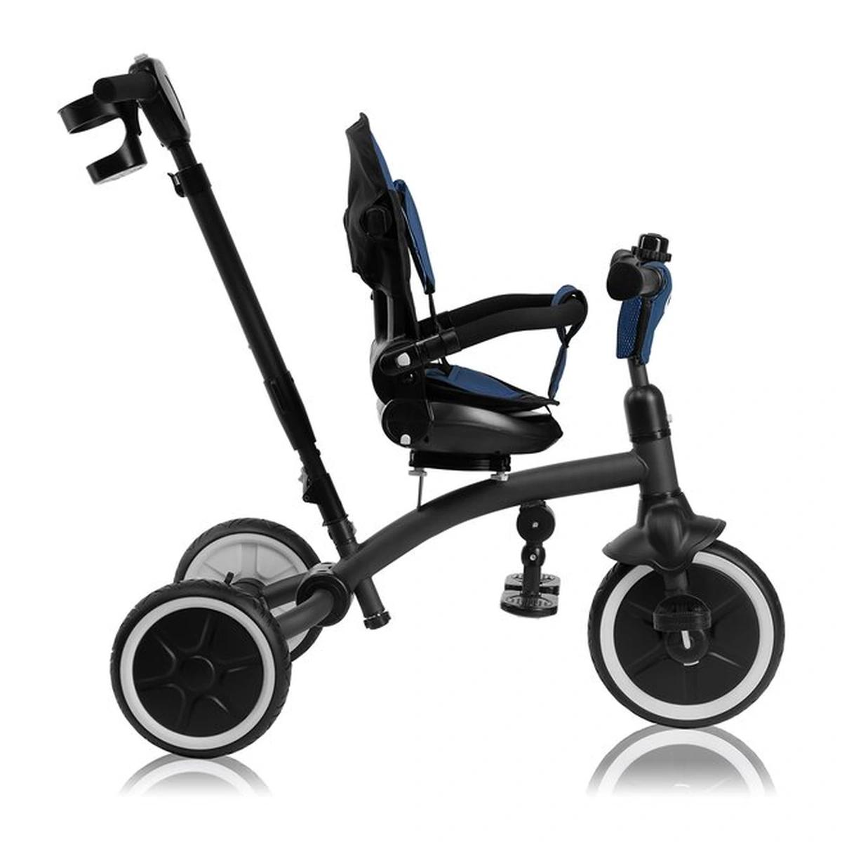 Inaltimea reglabila a manerului pentru parinte (80-100 cm) permite personalizarea in functie de inaltimea ingrijitorului. Designul usor al produsului asigura transportul facil. Cu gandul la plimbarile lungi, am asigurat si ca caruciorul/tricicleta este extrem de manevrabil.