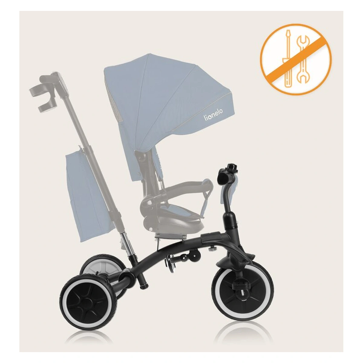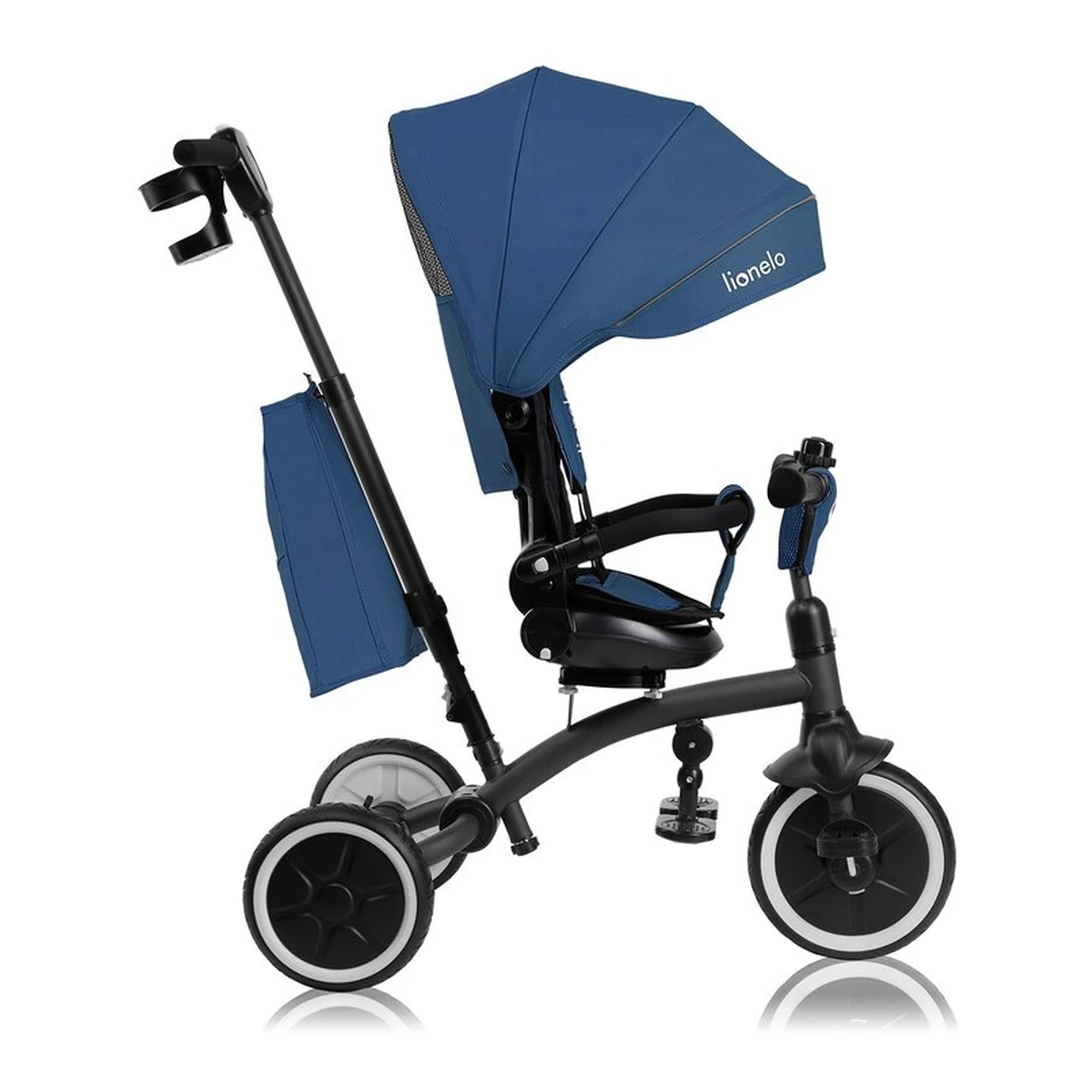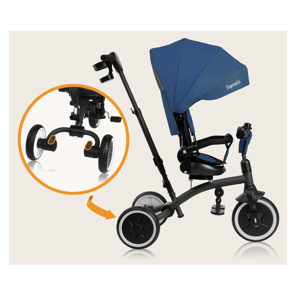 Lionelo Tris Plus este un produs 2 in 1 care combina functiile unui carucior bicicleta si ale unei triciclete. Este conceput pentru copii de la aproximativ 9 luni pana la aproximativ 5 ani sau pana cand ating o greutate de 25 kg. Datorita designului sau modular, tricicleta se adapteaza pe masura ce copilul creste. Dispune de doua suporturi de picioare confortabile pentru copiii mai mici si mai mari, care pot lua o pauza, in timp ce functia de roata libera permite pedalarea fara a influenta viteza de deplasare. Scaunul pivotant la 360 grade cu reglare a inclinarii spatarului ofera flexibilitatea de a personaliza setarile scaunului in functie de preferintele copilului. Rotile mari si rezistente la perforare din PU se descurca usor pe diverse terenuri. Tris Plus se asambleaza cu un clic, eliminand necesitatea unor unelte suplimentare. Cand produsul este pliat, este compact, asigurand o depozitare convenabila.