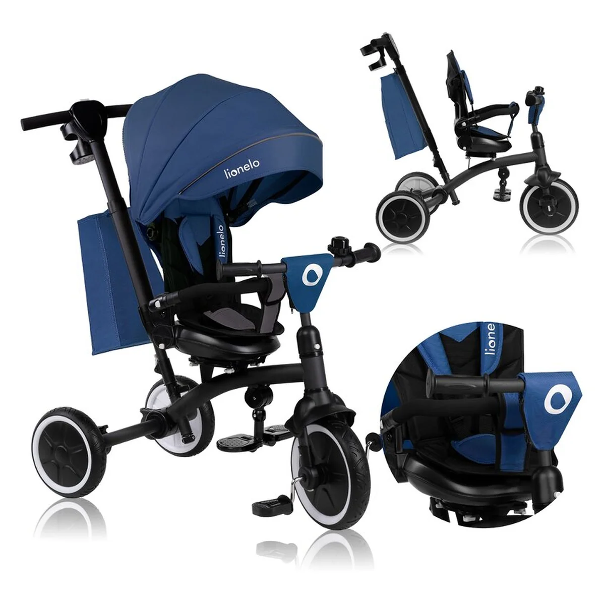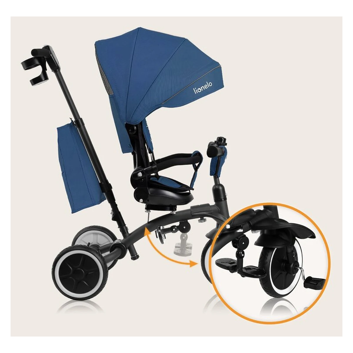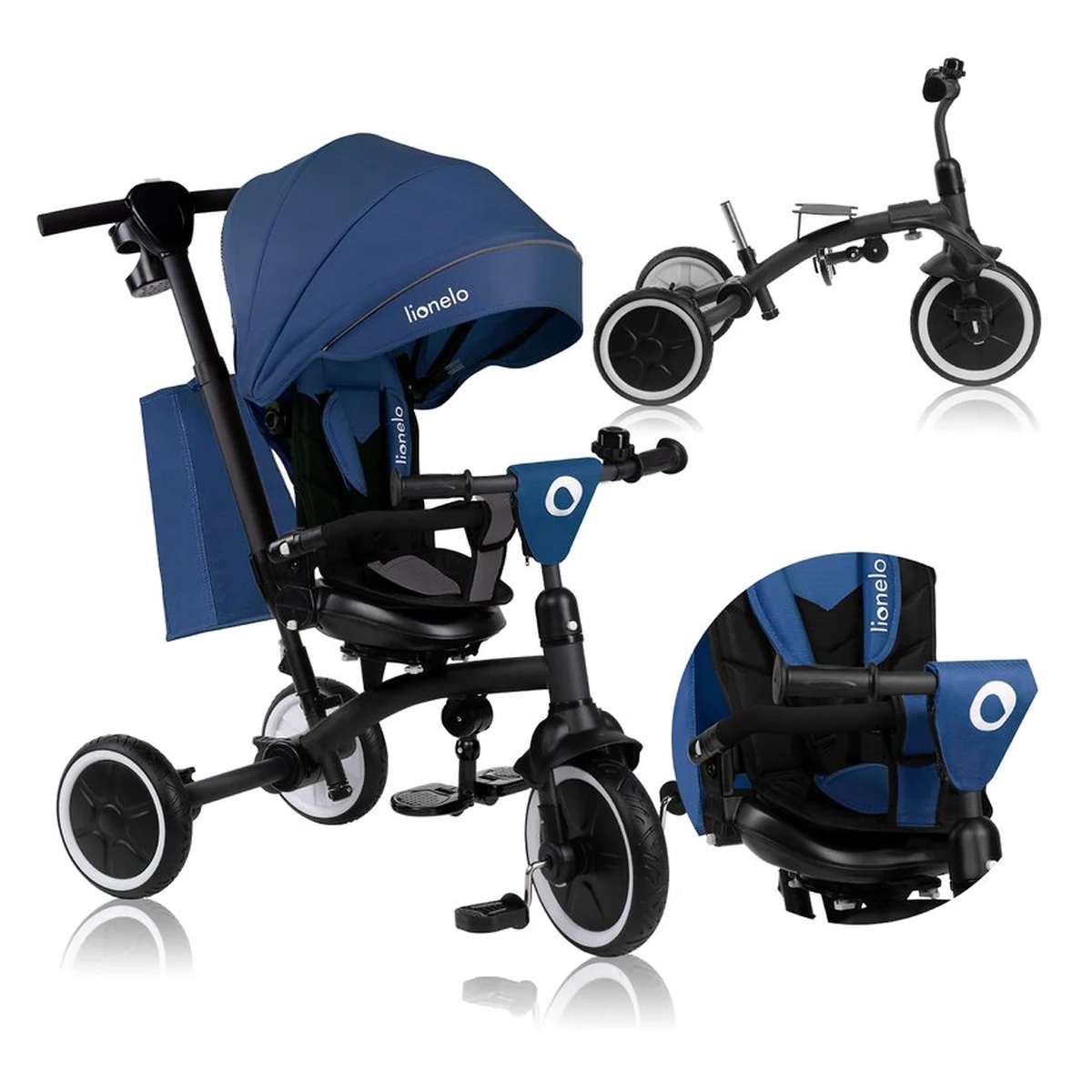 Lionelo Tris Plus este un produs 2 in 1 care combina functiile unui carucior bicicleta si ale unei triciclete. Este conceput pentru copii de la aproximativ 9 luni pana la aproximativ 5 ani sau pana cand ating o greutate de 25 kg. Datorita designului sau modular, tricicleta se adapteaza pe masura ce copilul creste. Dispune de doua suporturi de picioare confortabile pentru copiii mai mici si mai mari, care pot lua o pauza, in timp ce functia de roata libera permite pedalarea fara a influenta viteza de deplasare. Scaunul pivotant la 360 grade cu reglare a inclinarii spatarului ofera flexibilitatea de a personaliza setarile scaunului in functie de preferintele copilului. Rotile mari si rezistente la perforare din PU se descurca usor pe diverse terenuri. Tris Plus se asambleaza cu un clic, eliminand necesitatea unor unelte suplimentare. Cand produsul este pliat, este compact, asigurand o depozitare convenabila.
