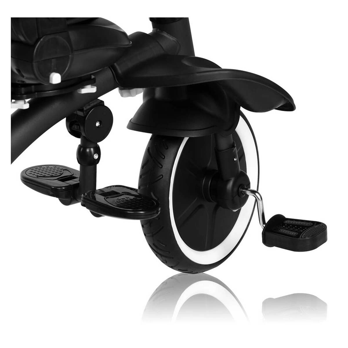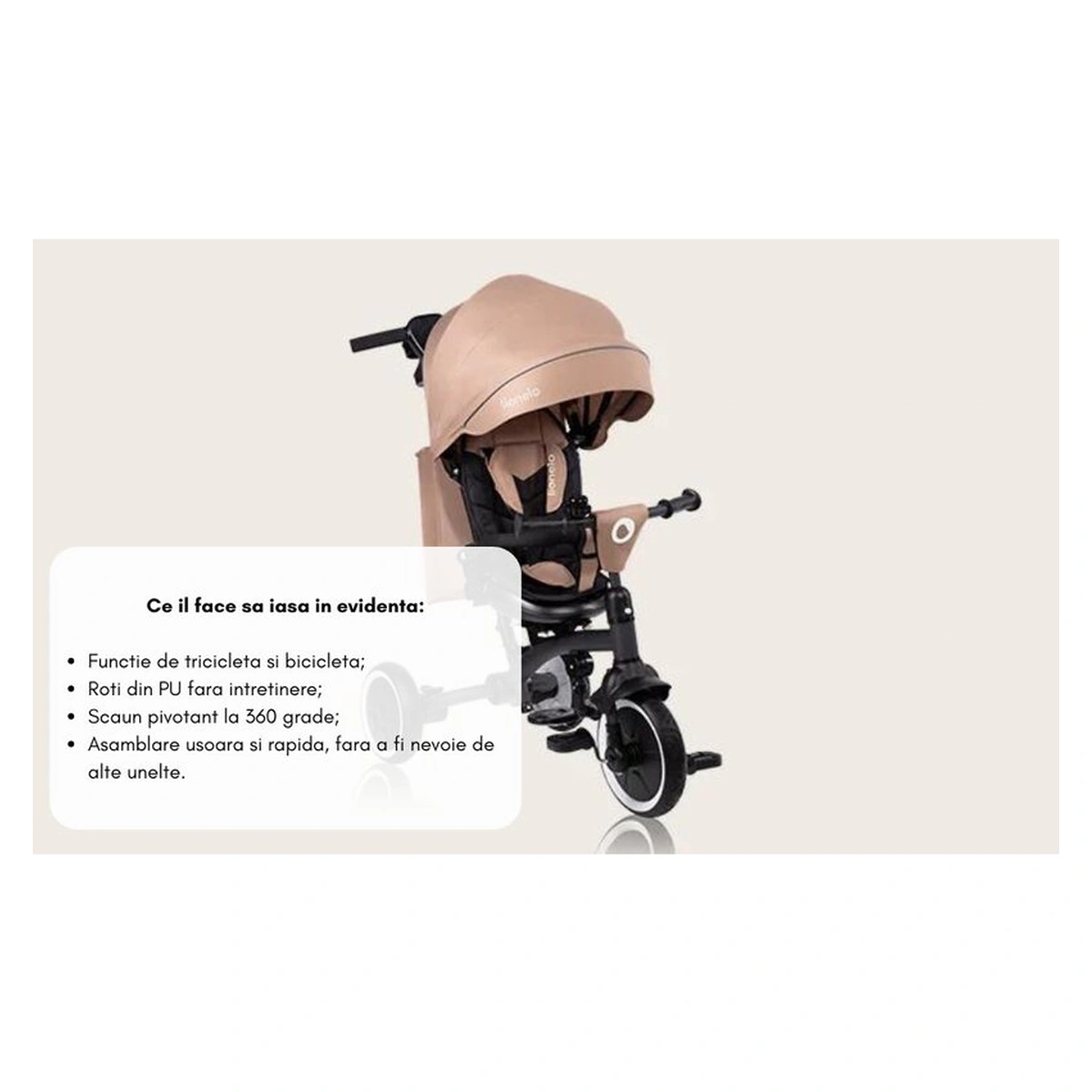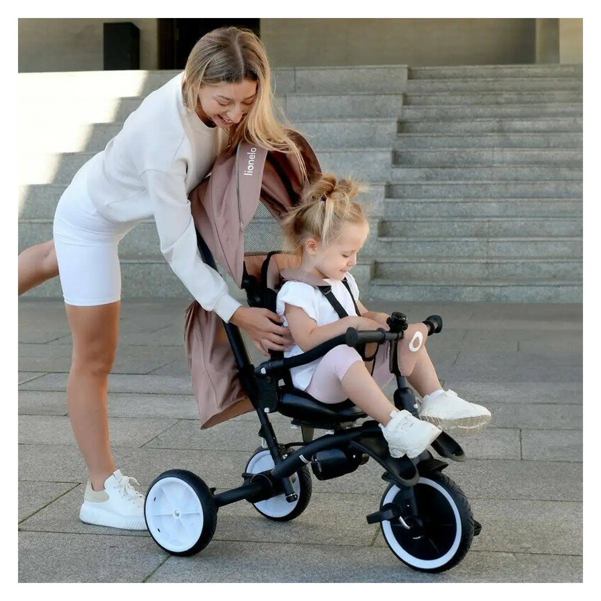 Lionelo Tris Plus este un produs 2 in 1 care combina functiile unui carucior bicicleta si ale unei triciclete. Este conceput pentru copii de la aproximativ 9 luni pana la aproximativ 5 ani sau pana cand ating o greutate de 25 kg. Datorita designului sau modular, tricicleta se adapteaza pe masura ce copilul creste. Dispune de doua suporturi de picioare confortabile pentru copiii mai mici si mai mari, care pot lua o pauza, in timp ce functia de roata libera permite pedalarea fara a influenta viteza de deplasare. Scaunul pivotant la 360 grade cu reglare a inclinarii spatarului ofera flexibilitatea de a personaliza setarile scaunului in functie de preferintele copilului. Rotile mari si rezistente la perforare din PU se descurca usor pe diverse terenuri. Tris Plus se asambleaza cu un clic, eliminand necesitatea unor unelte suplimentare. Cand produsul este pliat, este compact, asigurand o depozitare convenabila.