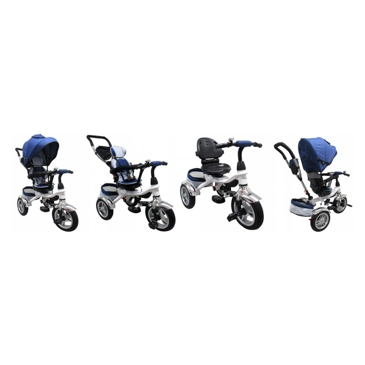 1. Tricicleta cu echipament complet: parasolarul protejeaza copilul impotriva razelor UV, centurile de siguranta protejeaza copilul, parintele controleaza manerul din spate (manerul directioneaza ghidonul astfel incat tricicleta sa fie controlara de catre acesta), manerul poate fi reglat cu aproximativ 4 cm.