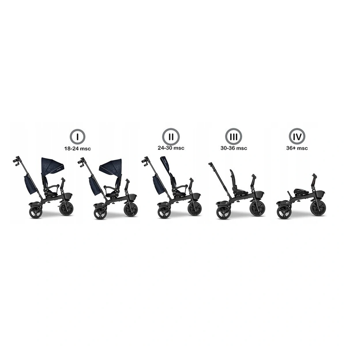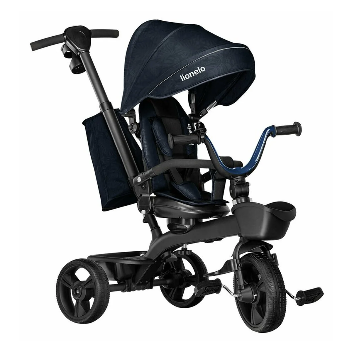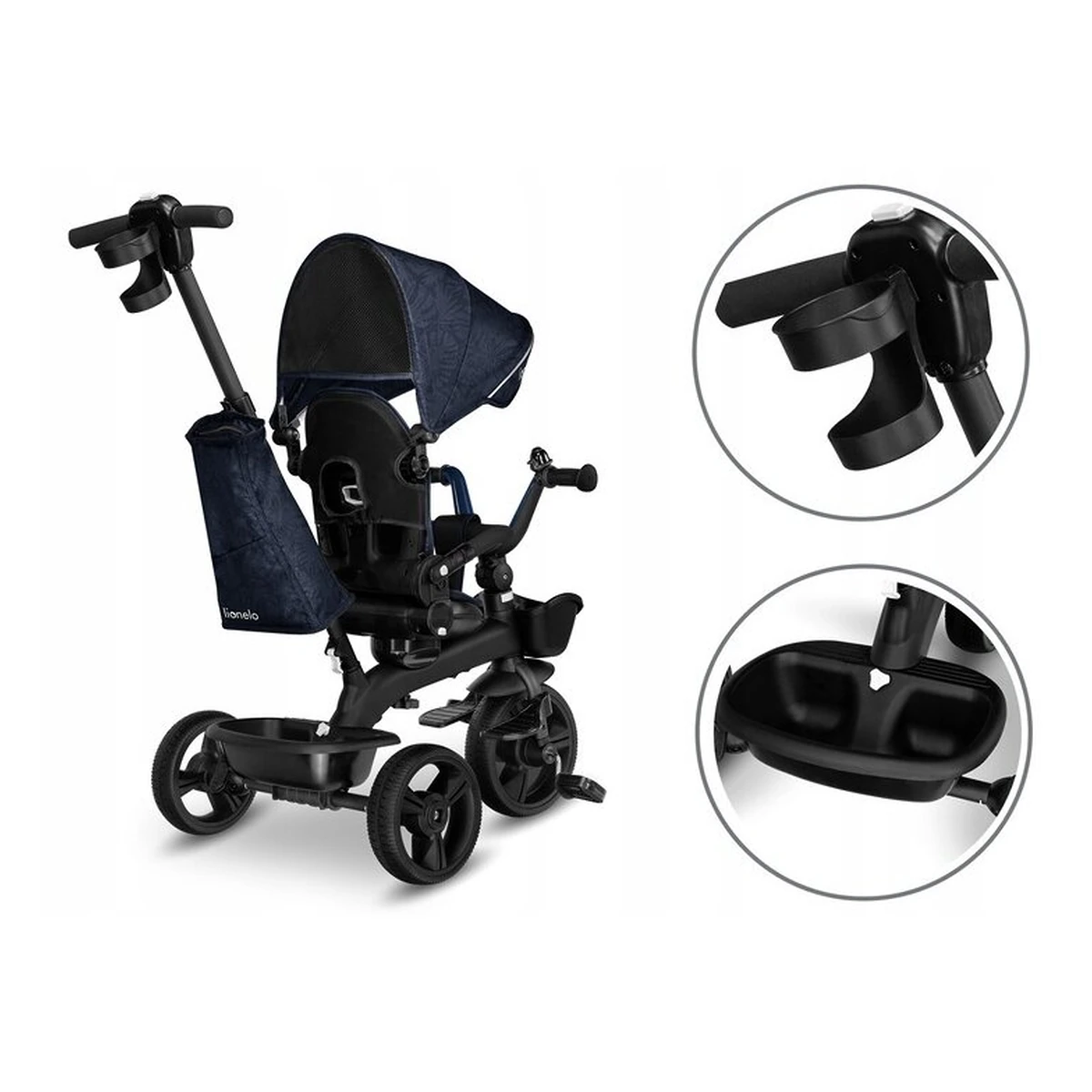 Tricicleta Kori, Cu suport de picioare, Control al directiei, Scaun reversibil, Rotire 360 grade, Pliabila, Conform cu standardul european de securitate EN71, Blue Navy