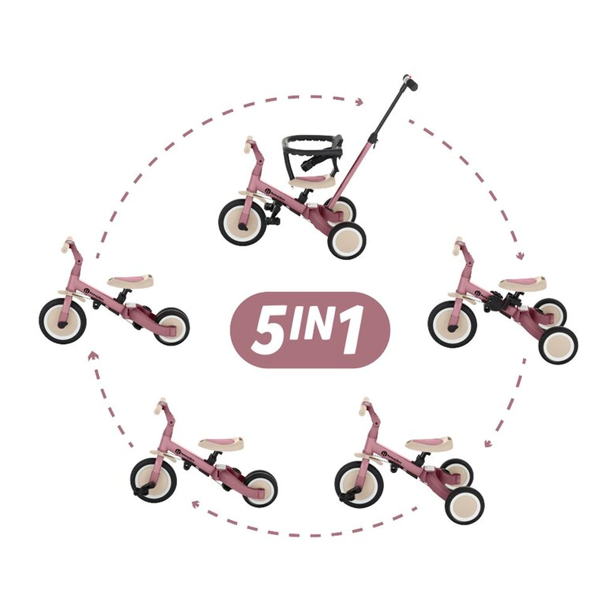 - O caracteristica unica a bicicletei este multifunctionalitatea sa, permitandu-va sa o utilizati in cinci moduri diferite, in functie de varsta si abilitatile copilului: