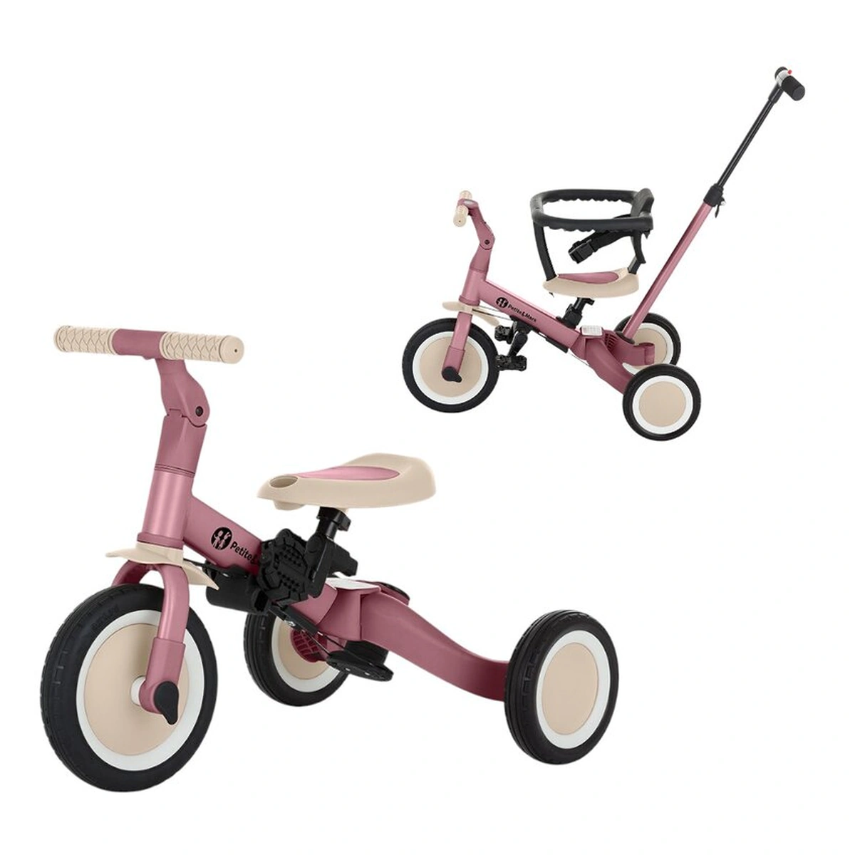 - Initial, este un triciclu cu posibilitatea de asistenta din partea unui parinte, in timp ce versiunea finala este o bicicleta standard cu pedale, fara niciun element de sustinere suplimentar.