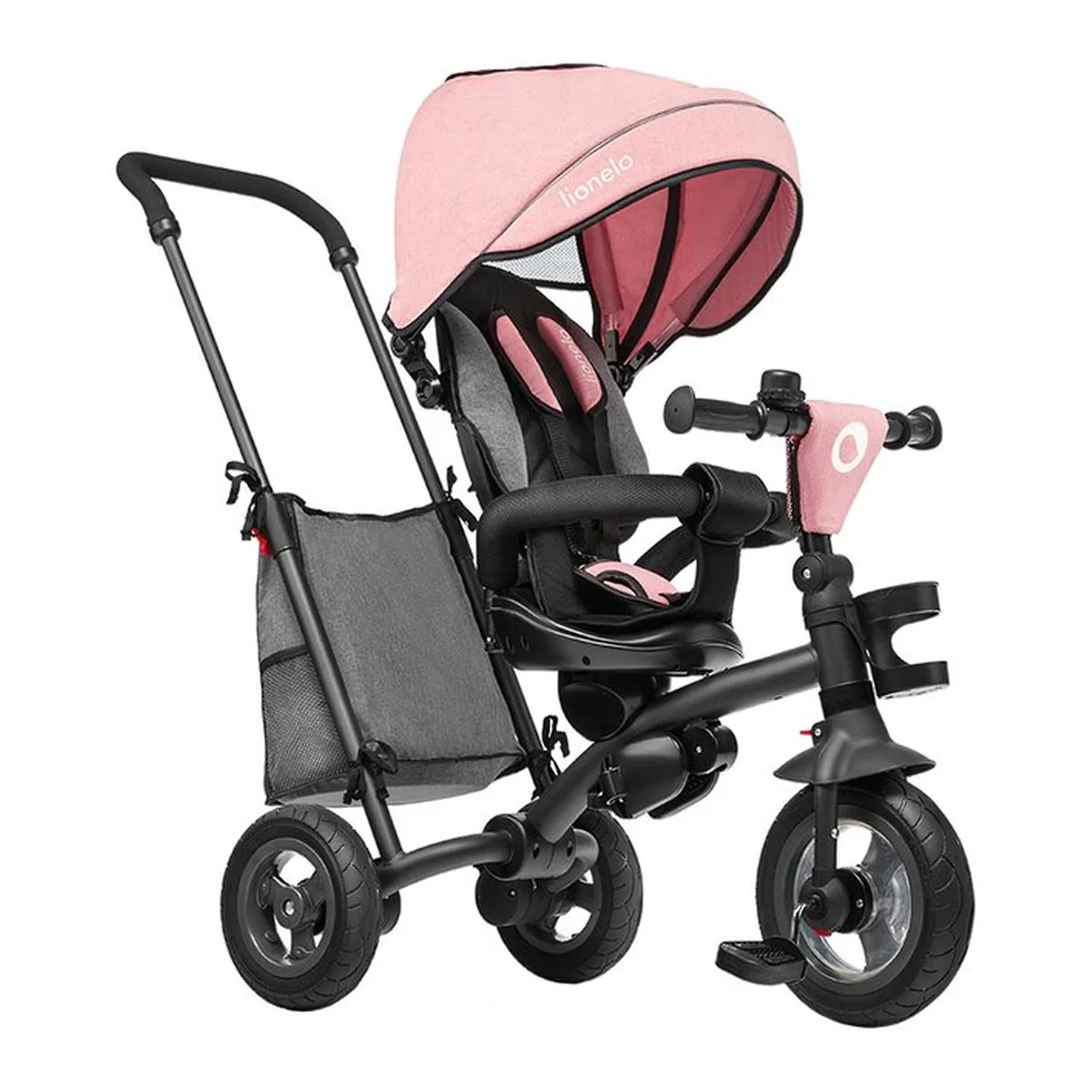 Lionelo Tris are un mecanism de pliere convenabil si intuitiv la o dimensiune compacta, facandu-l perfect pentru calatorii. Este gata de utilizare in cateva secunde - totul fara alte instrumente suplimentare. In partea din fata a vehiculului exista un claxon si un suport pentru sticla sau sticla de apa. Setul de produse include si o geanta pentru accesoriile copiilor si cele mai necesare lucruri.