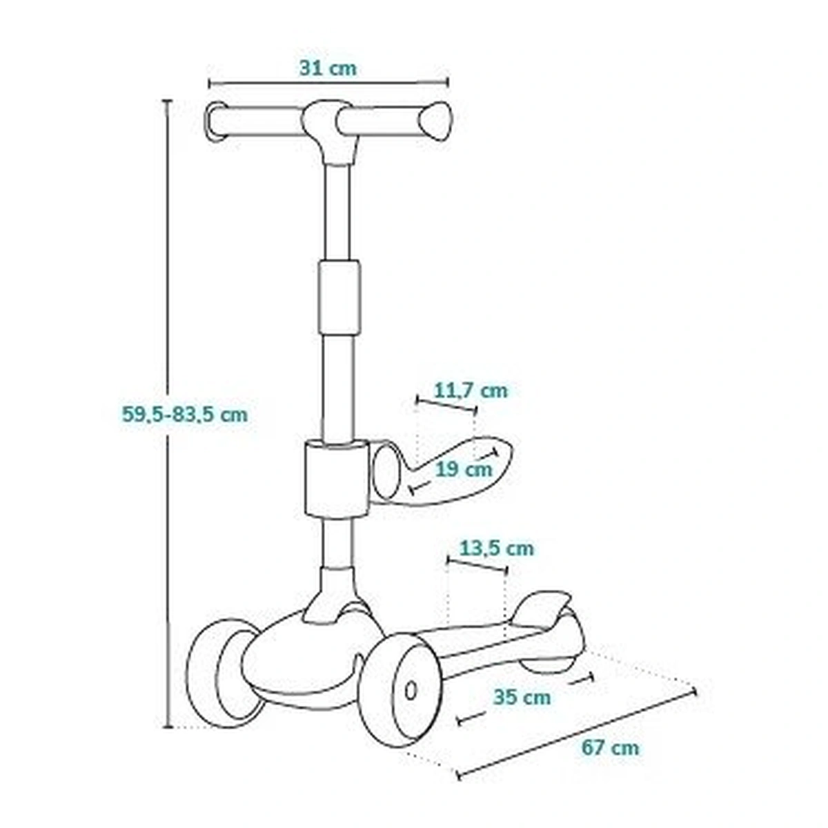 Lionelo Franky combina doua vehicule pentru copii intr-unul singur: o trotineta si o bicicleta de echilibru. Chiar si copiii de doar un an pot sta confortabil si in siguranta pe sezutul detasabil. Inaltimea ghidonului este reglabila infinit pentru a se adapta la inaltimea copilului. Cu sezutul indepartat, trotineta este potrivita pentru copii pana la o greutate de 50 kg.