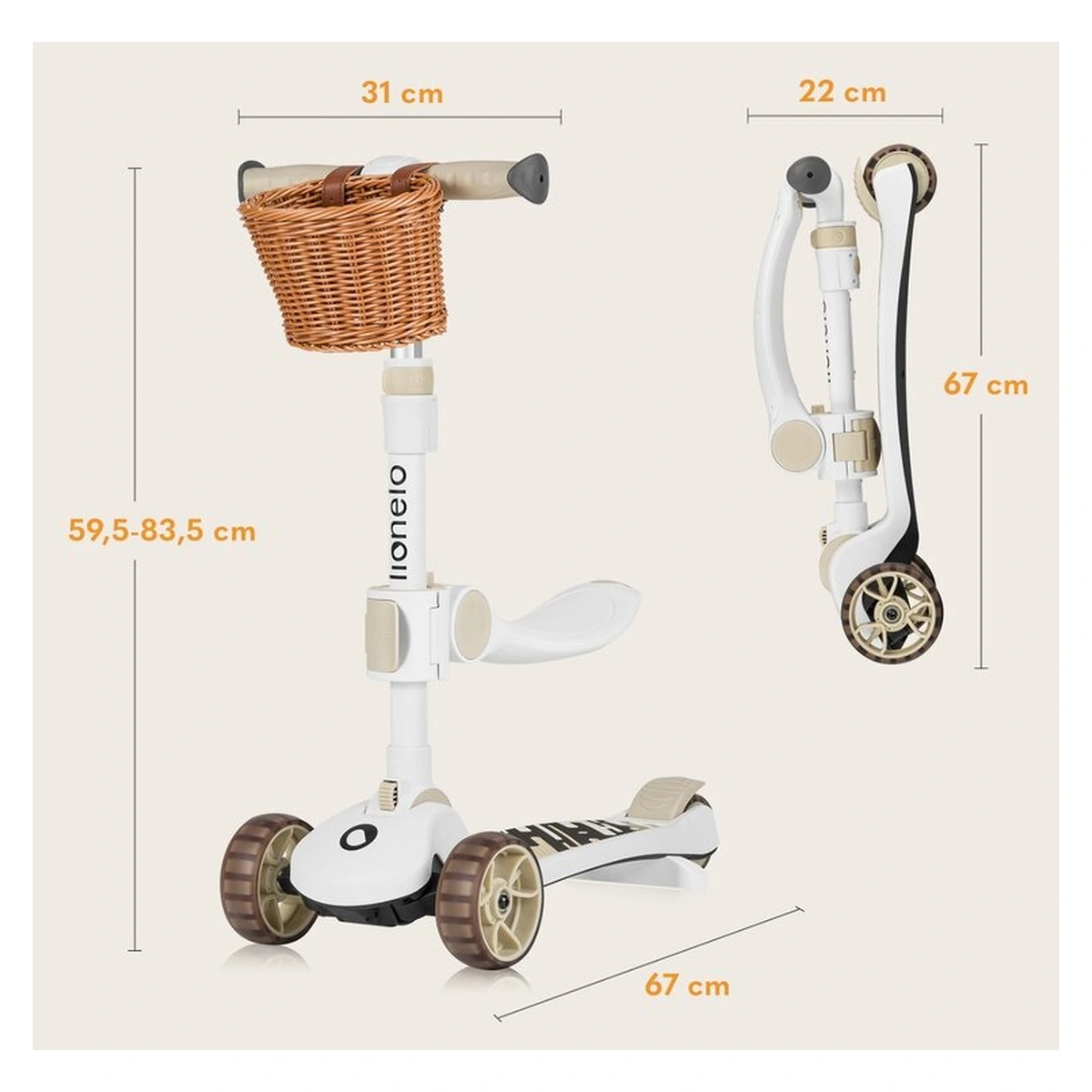 Lionelo Trotineta, Lionelo, Franky, Pliabila, Pana la 50 kg, Sezut detasabil, Roti cu LED, 12 luni+, Beige
