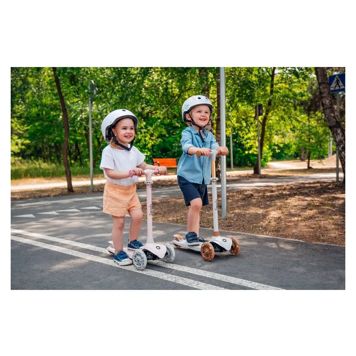 Geometria de franare special adaptata asigura o franare eficienta, in timp ce rulmentii avansati ABEC-7 asigura o calatorie lina si stabila. Sistemul dublu de reglare a inaltimii volanului si limitatorul de directie la 65 de grade sporesc si mai mult siguranta utilizarii. Scuterele indeplinesc standardele stricte de siguranta EN71-1/2/3, ceea ce garanteaza fiabilitatea si calitatea acestora.