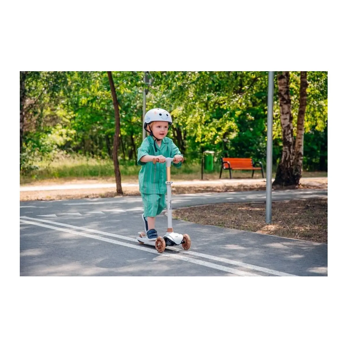 Siguranta copilului dumneavoastra este extrem de importanta pentru noi. De aceea, scuterul de echilibru Lionelo Jessy Grey Brown este proiectat avand in vedere cel mai inalt standard de siguranta si confort. Finisajul puntii cu o suprafata antiderapanta si frana integrata pe puntea spate, ranforsata cu un substrat de otel, garanteaza stabilitatea in timpul fiecarei calatorii.