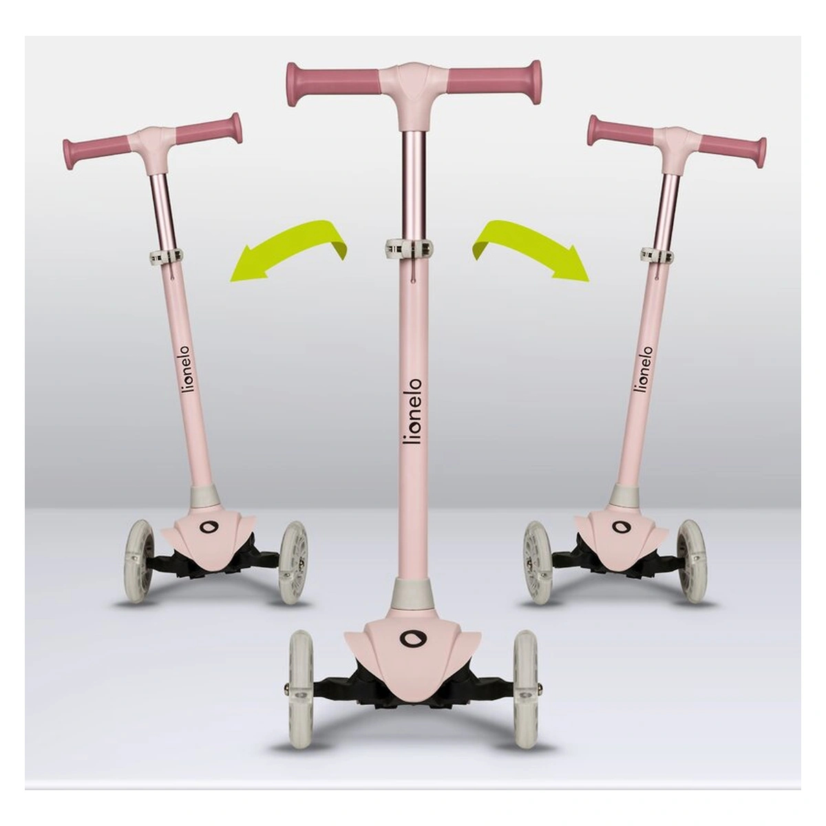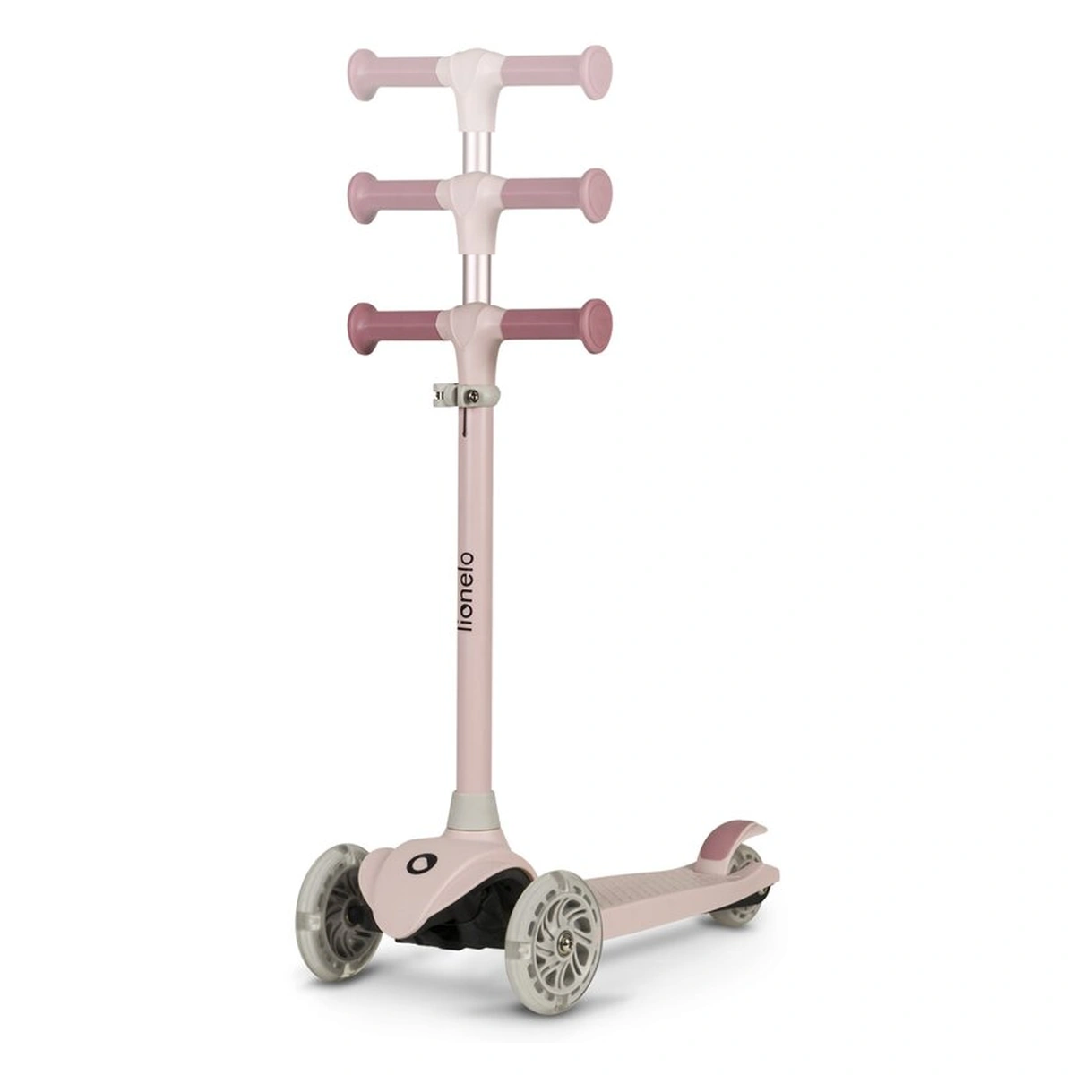 Trotineta de echilibru Lionelo Jessy Pink Rose este o oportunitate excelenta de a combina activitatea fizica cu dezvoltarea abilitatilor copilului tau. Datorita acestuia, micul tau calator de la varsta de trei ani se poate bucura de distractie in aer liber, imbunatatindu-si in acelasi timp echilibrul si coordonarea motorie. Cu trei roti solide si iluminare LED in fiecare dintre ele, fiecare calatorie capata o dimensiune noua, magica, introducand un joc fascinant de lumini in activitatea de zi cu zi.