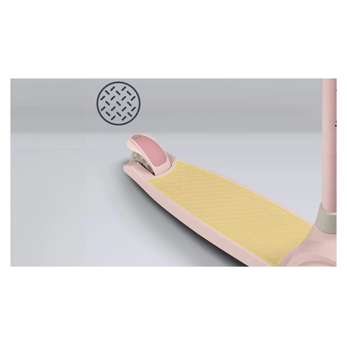 Siguranta copilului dumneavoastra este extrem de importanta pentru noi. De aceea, scuterul de echilibru Lionelo Jessy Pink Rose este proiectat avand in vedere cel mai inalt standard de siguranta si confort. Finisajul puntii cu o suprafata antiderapanta si frana integrata pe puntea spate, ranforsata cu un substrat de otel, garanteaza stabilitatea in timpul fiecarei calatorii.