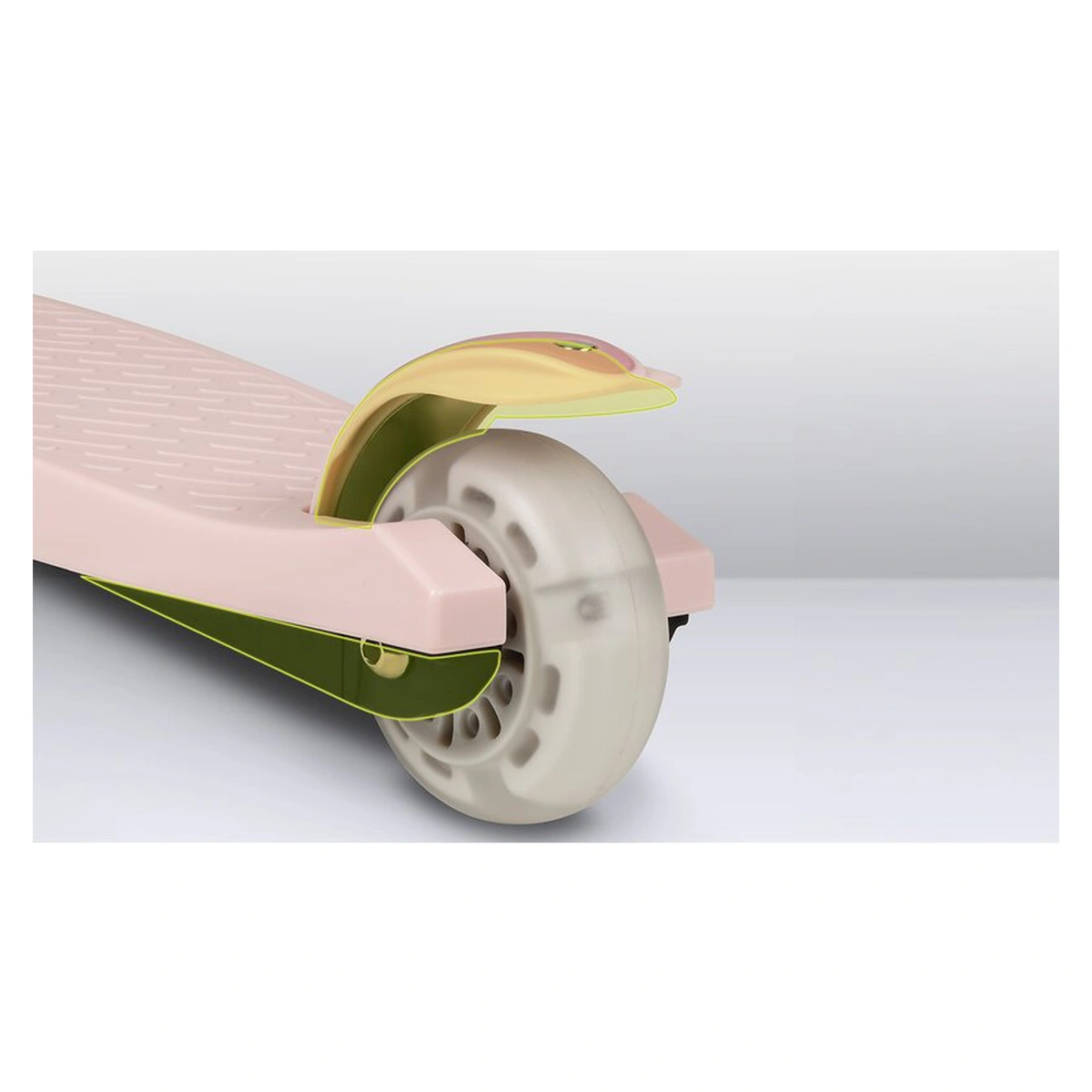 Geometria de franare special adaptata asigura o franare eficienta, in timp ce rulmentii avansati ABEC-7 asigura o calatorie lina si stabila. Sistemul dublu de reglare a inaltimii volanului si limitatorul de directie la 65 de grade sporesc si mai mult siguranta utilizarii. Scuterele indeplinesc standardele stricte de siguranta EN71-1/2/3, ceea ce garanteaza fiabilitatea si calitatea acestora.