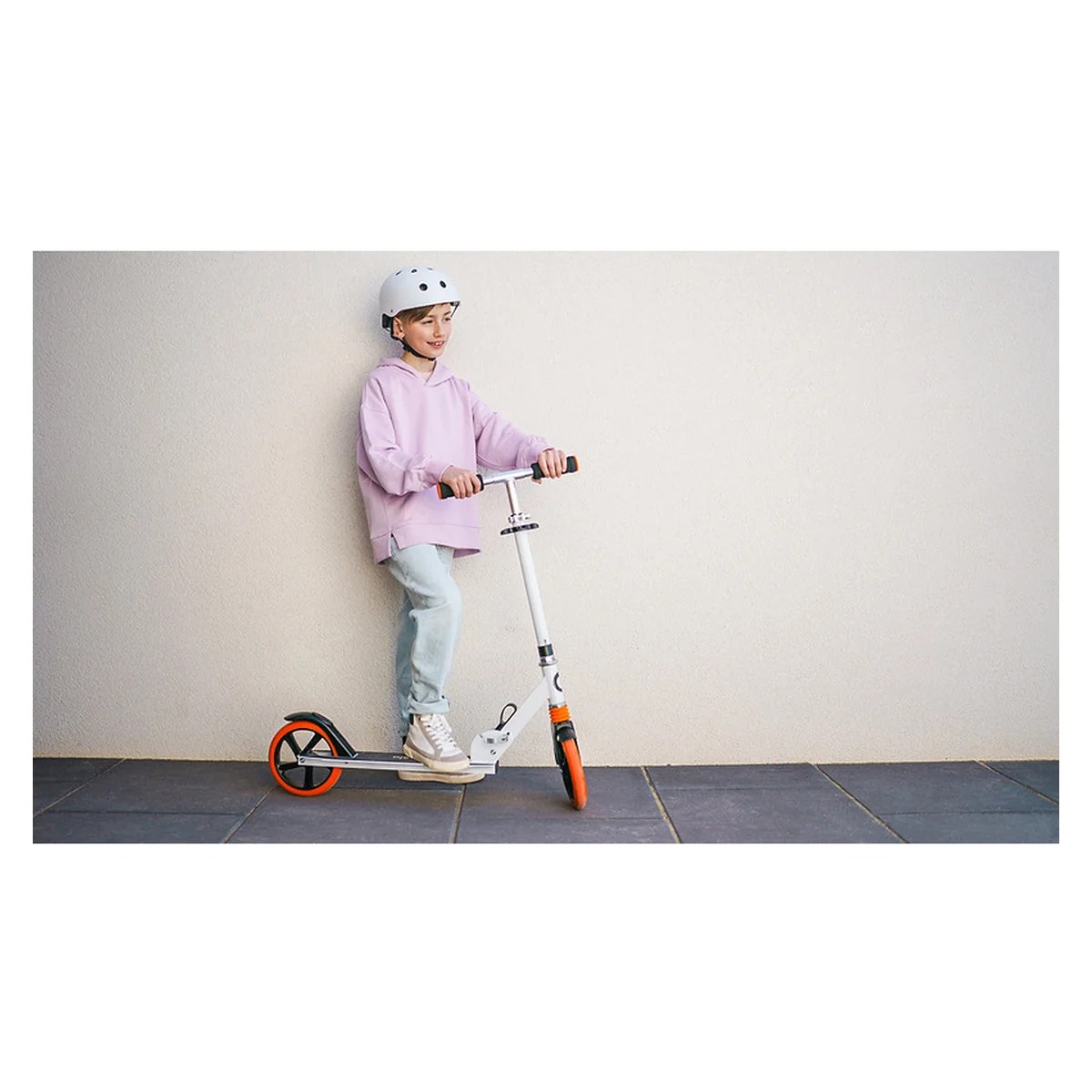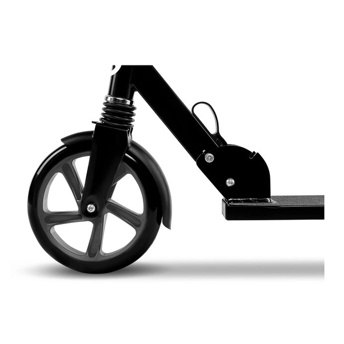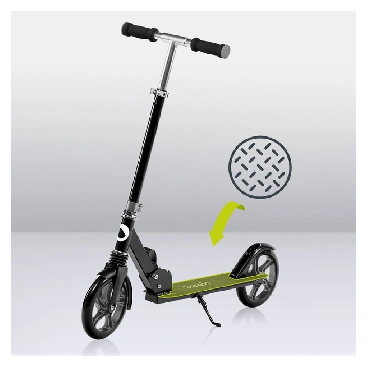 Cadru si ghidon sunt realizate dintr-un aliaj de aluminiu usor si durabil. Rotile din poliuretan rezistent la abraziune ale trotinetei sunt echipate cu rulmenti clasa ABEC-7 pentru o viteza mare in deplasare. Produsul este dotat cu o absorbtie eficienta a socurilor si frana spate care actioneaza si ca protectie noroi. Vehiculul are o platforma antiderapanta si un suport lateral care sustine trotineta intr-o pozitie stabila in caz de parcare. Constructia solida permite utilizarea produsului de catre persoane cu o greutate de pana la 100 de kilograme.