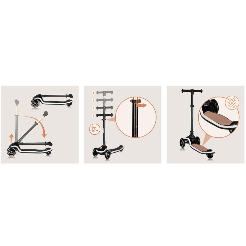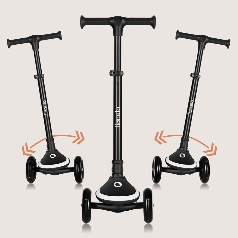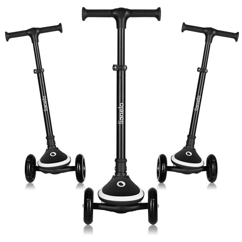 Trotineta pentru copii, Lionelo, Mey, Ultrapliabila, Cu lumini si cosulet, Maner ajustabil pe inaltime, 3 ani+, Pana la 50 Kg, Ultra usor, 2.8 kg, Certificata Intertek, Negru