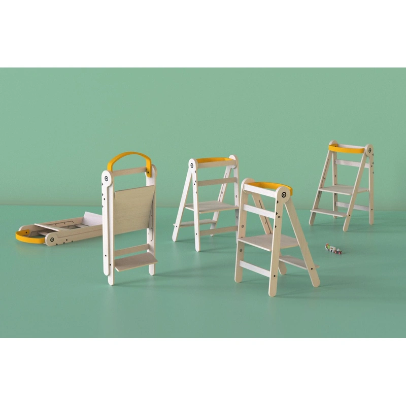 Usor de folosit: este proiectat pentru a permite copiilor sa urce foarte usor, avand 3 trepete de inaltime pentru a se potrivi diferitelor varste si a putea fi folosit multi ani la rand. Cu learning tower-ul pliabil, copiii mici nu trebuie sa astepte sa mai creasca pentru a ajunge sus la blat, si devin independenți ajungand sa se spele singuri pe maini sau sa ii ajute pe mami si tati in timp ce gatesc, totul in deplina siguranta