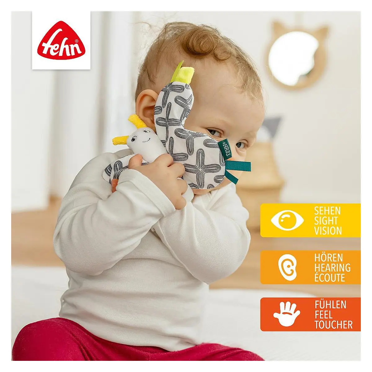 Un zbor de descoperire pentru simturile bebelusului – moale, fosnitor si adorabil. Jucaria face parte din colectia DoBabyDoo® Black & White Collection.