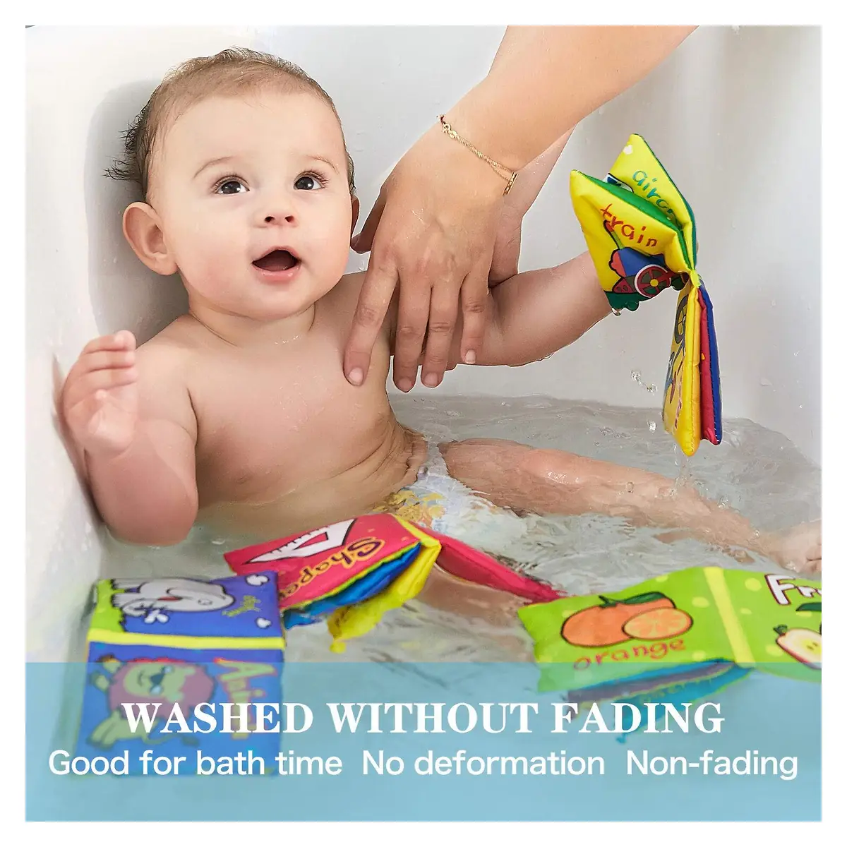 Setul de 6 carticele fosnitoare de la Topbright este perfect pentru a oferi ore intregi de distractie bebelusului, chiar si in cada
